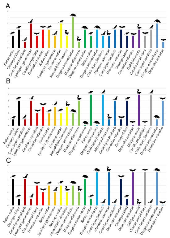 3.1. Evaluation of the Specificity of Mammalian Species Identification Using BMS Molecular Targets and T. cruzi Infection