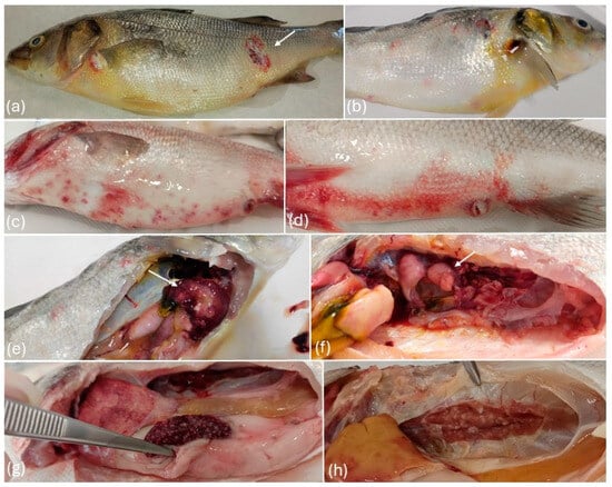 - Uzun Yaylacı, E.U.; Öǧüt, H. The Isolation Frequency of Bacterial Pathogens from Sea Bass (Dicentrarchus labrax) in the Southeastern Black Sea. Aquaculture 2015, 437, 30–37. [Google Scholar] [CrossRef]