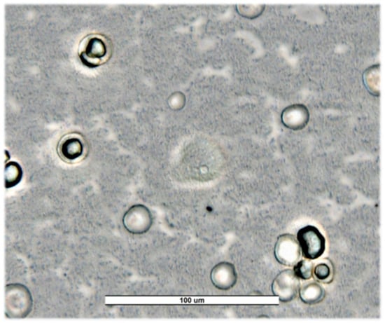 Figure 3. Trophozoites and cysts of Naegleria americana from Salamanca’s river (SW23) for first sampling. Image was obtained with an ECHO Revolution hybrid microscope (40×). Scale bar represents 100 μM.