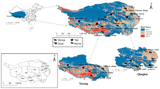 The previously mentioned results were superimposed upon the distribution map of the Qinghai-Tibet Plateau, as illustrated in Figure 1 [39]. In light of these derived insights, an analysis of the implications for animal husbandry within the region was conducted.