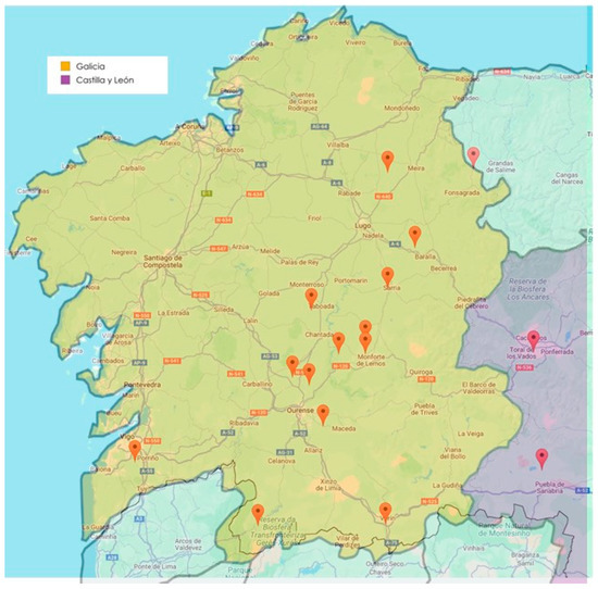 The owners were contacted by phone and all accepted to participate, with the agreement to send them a brief report including the results. The area of the study comprised two autonomous communities, Galicia and Castilla y León. To establish the climatic areas of these regions, the Köppen-Geiger classification was contemplated; hence, two climatic areas usually occurring on the western side of the continent between the latitudes of 30° and 45° were considered [17]:
