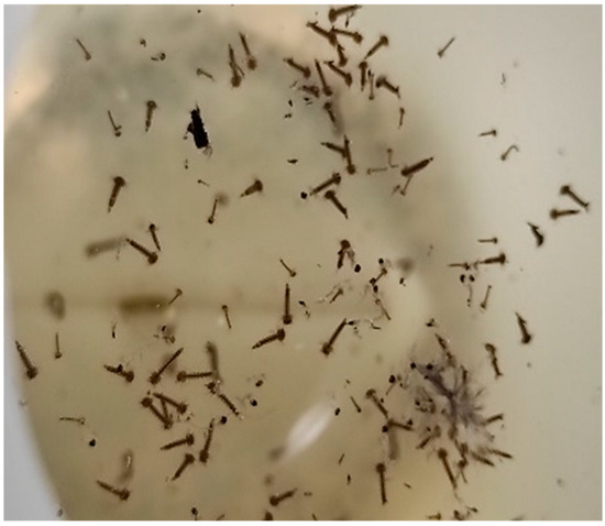 The collection tanks were transferred to the COPAR Laboratory (Faculty of Veterinary Medicine of Lugo, University of Santiago de Compostela, Spain) and frozen at −20 °C. Later, the identification was performed under a stereomicroscope (Leica EZ4D, Wetzlar, Germany), by using taxonomic and interactive keys [19,20,21].