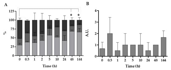 - Ciacci, C.; Manti, A.; Canonico, B.; Campana, R.; Camisassi, G.; Baffone, W.; Canesi, L. Responses of Mytilus galloprovincialis hemocytes to environmental strains of Vibrio parahaemolyticus, Vibrio alginolyticus, Vibrio vulnificus. Fish Shellfish Immunol. 2017, 65, 80–87. [Google Scholar] [CrossRef]