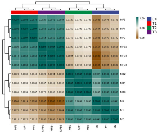Pearson’s correlation coefficient (R) is used as an index to assess the biological correlation between replicates. The closer the R2 is to 1, the stronger the correlation between two replicates, which should not be less than 0.8. In the present data, the R-value is greater than 0.95, and the data correlation is high (Figure 3).