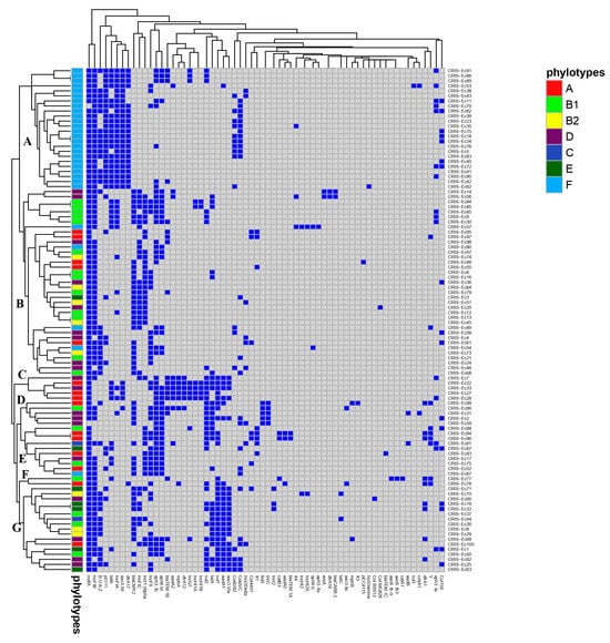 3.4. Heatmap Clustering and Phylogenetic Analysis of the Examined E. coli Isolates