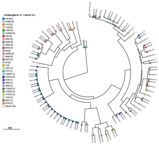 - Zhou, Z.; Charlesworth, J.; Achtman, M. HierCC: A multi-level clustering scheme for population assignments based on core genome MLST. Bioinformatics 2021, 37, 3645–3646. [Google Scholar] [CrossRef] [PubMed]
