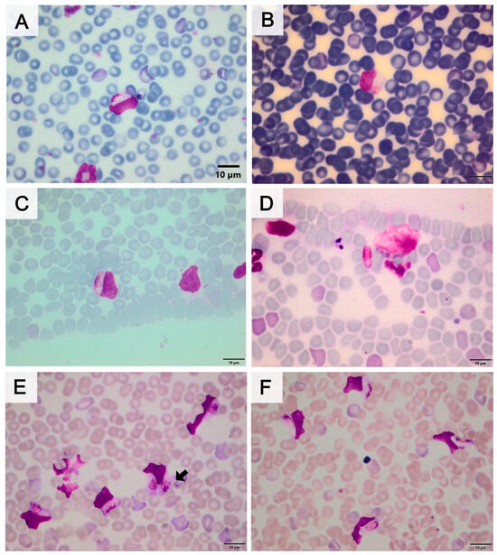 Two blood smears were prepared per animal, air-dried, and fixed in absolute methanol for 10 min. The slides were then stained with Giemsa in a 1:10 dilution and examined under an Olympus BX-51 optical microscope (Olympus Corporation, Tokyo, Japan) at a 1000× magnification.