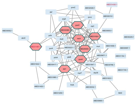 - Hanes, R.; Zhang, F.; Huang, Z. Protein Interaction Network Analysis to Investigate Stress Response, Virulence, and Antibiotic Resistance Mechanisms in Listeria monocytogenes. Microorganisms 2023, 11, 930. [Google Scholar] [CrossRef]