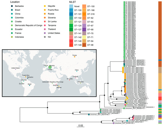 3.6. Phylogenetic Placement of Croatian L. kirschneri Isolates in a Global Context