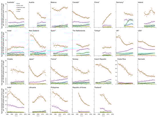 APA StyleMeng, X., Yang, B., Yin, H., Chen, J., Ma, W., Xu, Z., & Shen, Y. (2025). Global Burden and Incidence Trends in Cancers Associated with Human Papillomavirus Infection: A Population-Based Systematic Study. Pathogens, 14(9), 880. https://doi.org/10.3390/pathogens14090880