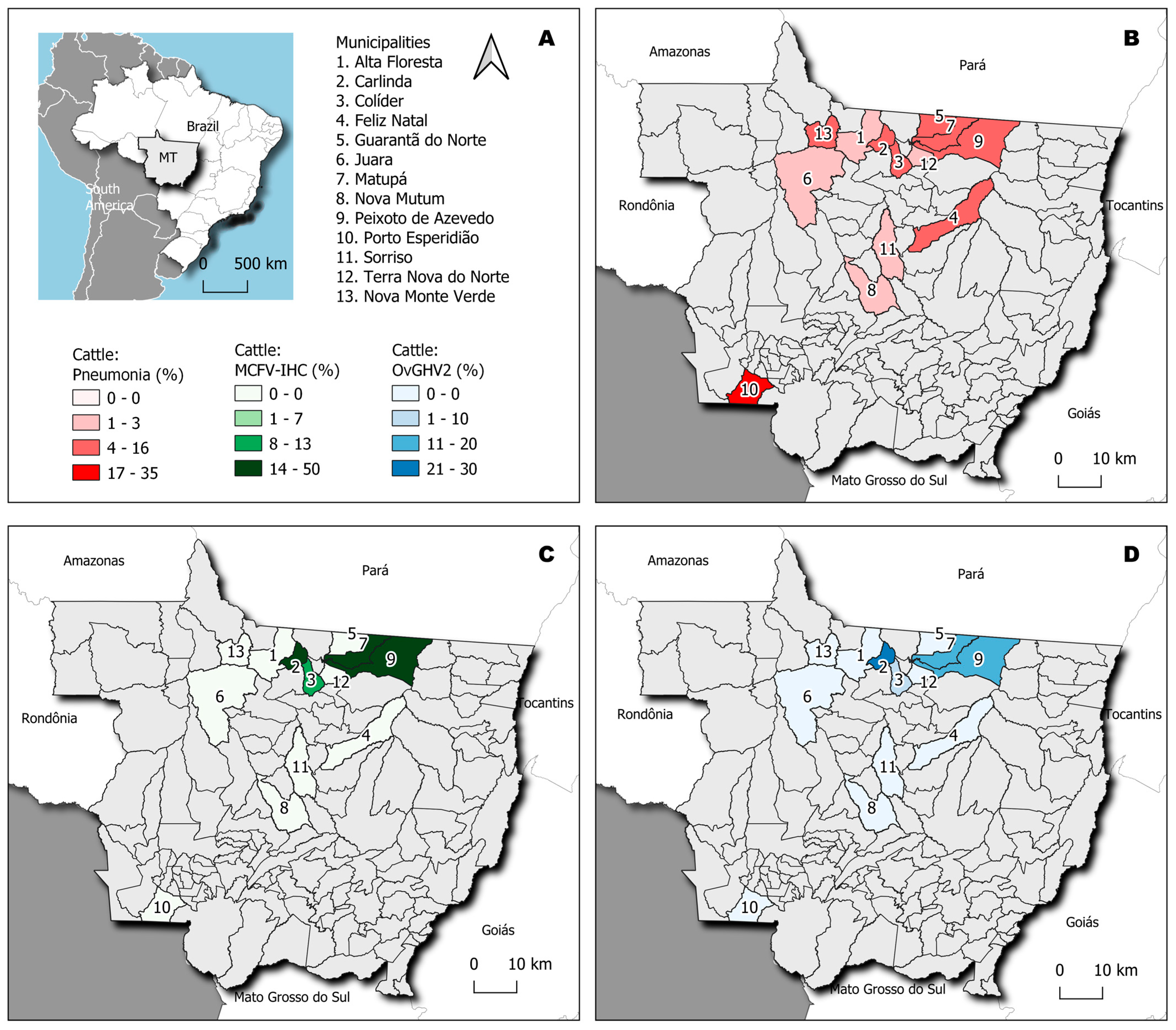 Peixoto de Azevedo | 6 | 1 | 2 | 1 | 2 | 0 | Quadruple; OvGHV2 + BCoV + BVDV |