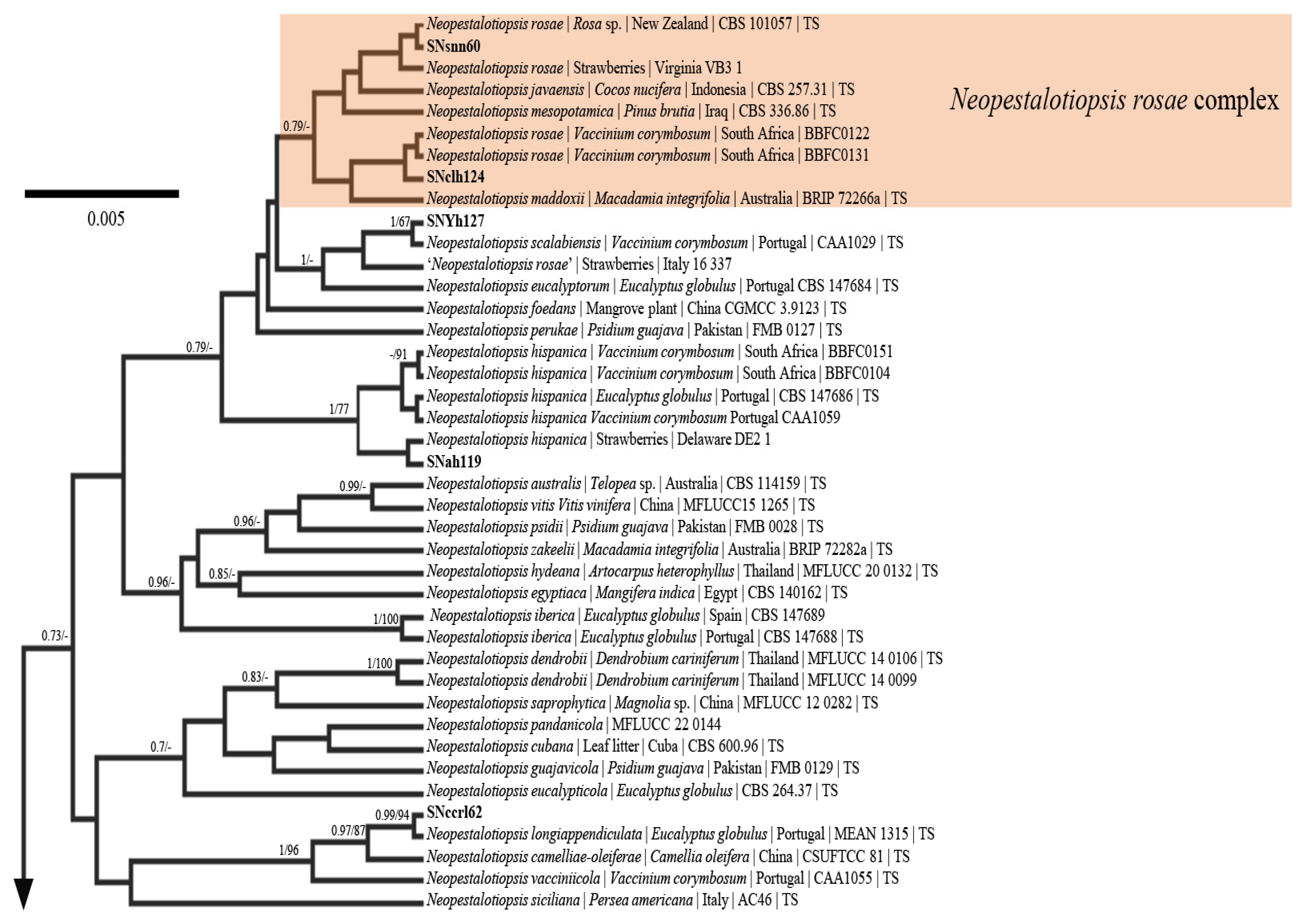 | N. rosae | SNcah118 | PX563605 | PX711530 | PX711490 |