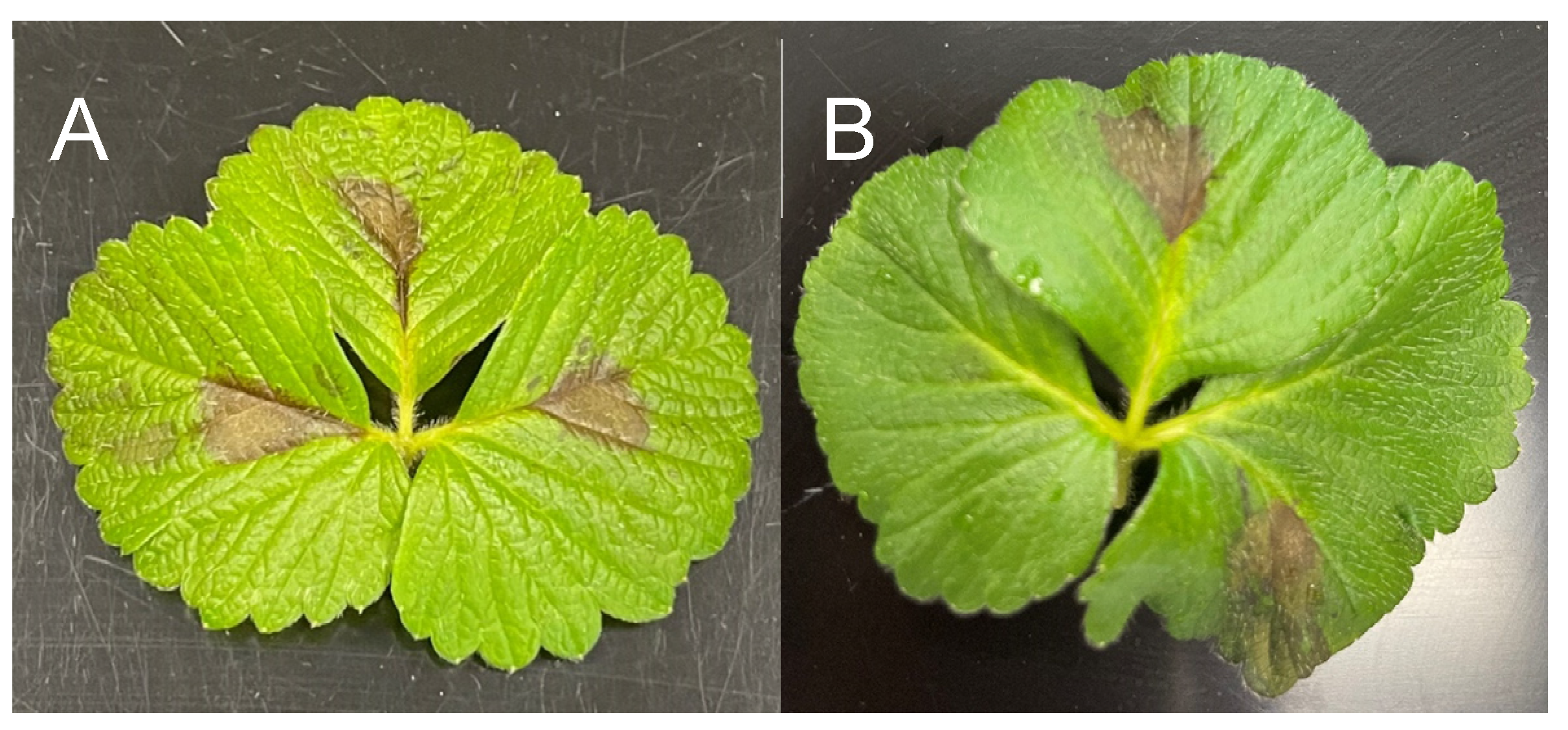 2.7. Detached-Leaf Pathogenicity Tests