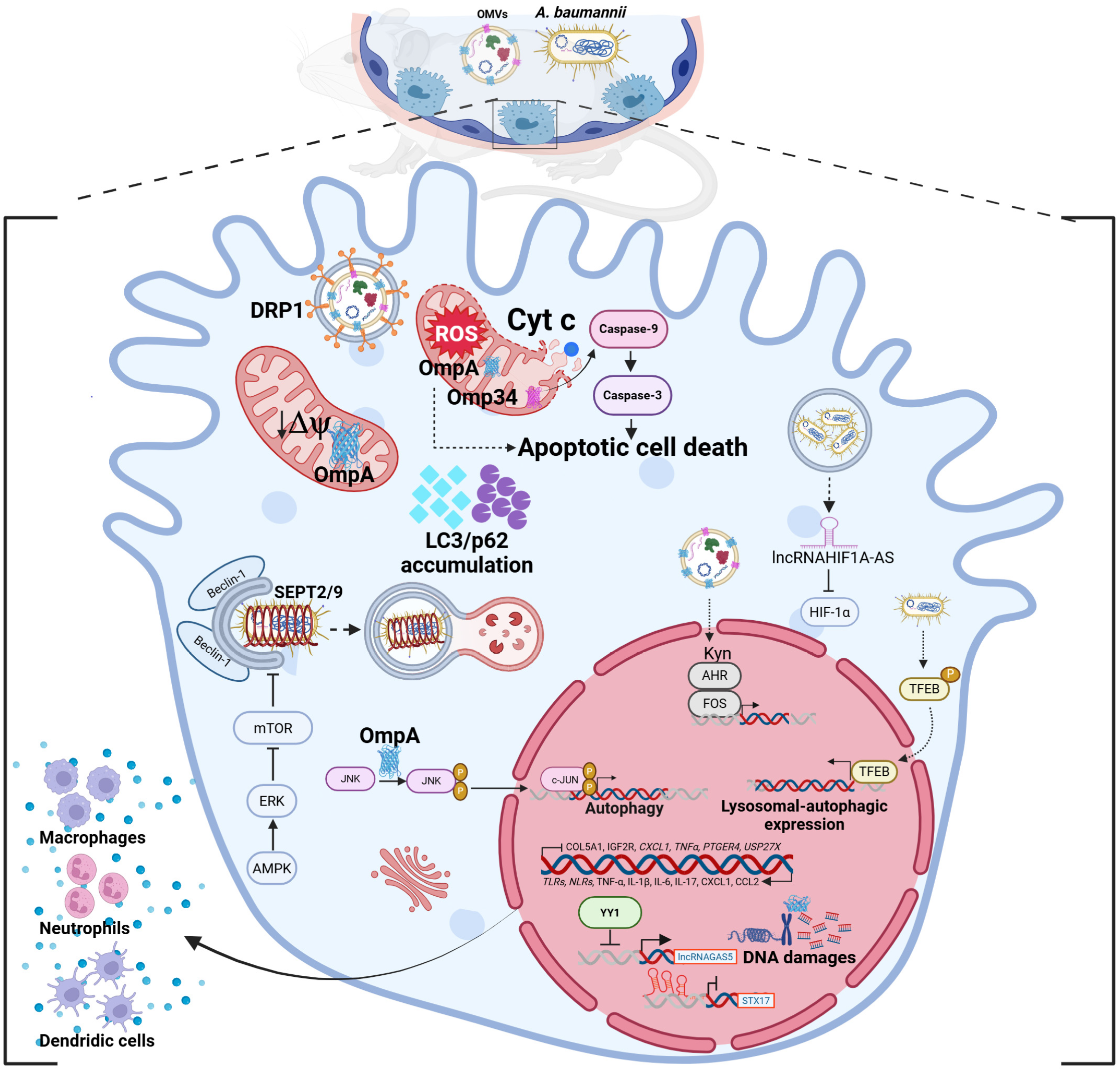 - Tiku, V.; Kofoed, E.M.; Yan, D.; Kang, J.; Xu, M.; Reichelt, M.; Dikic, I.; Tan, M.W. Outer membrane vesicles containing OmpA induce mitochondrial fragmentation to promote pathogenesis of Acinetobacter baumannii. Sci. Rep. 2021, 11, 618. [Google Scholar] [CrossRef] [PubMed]