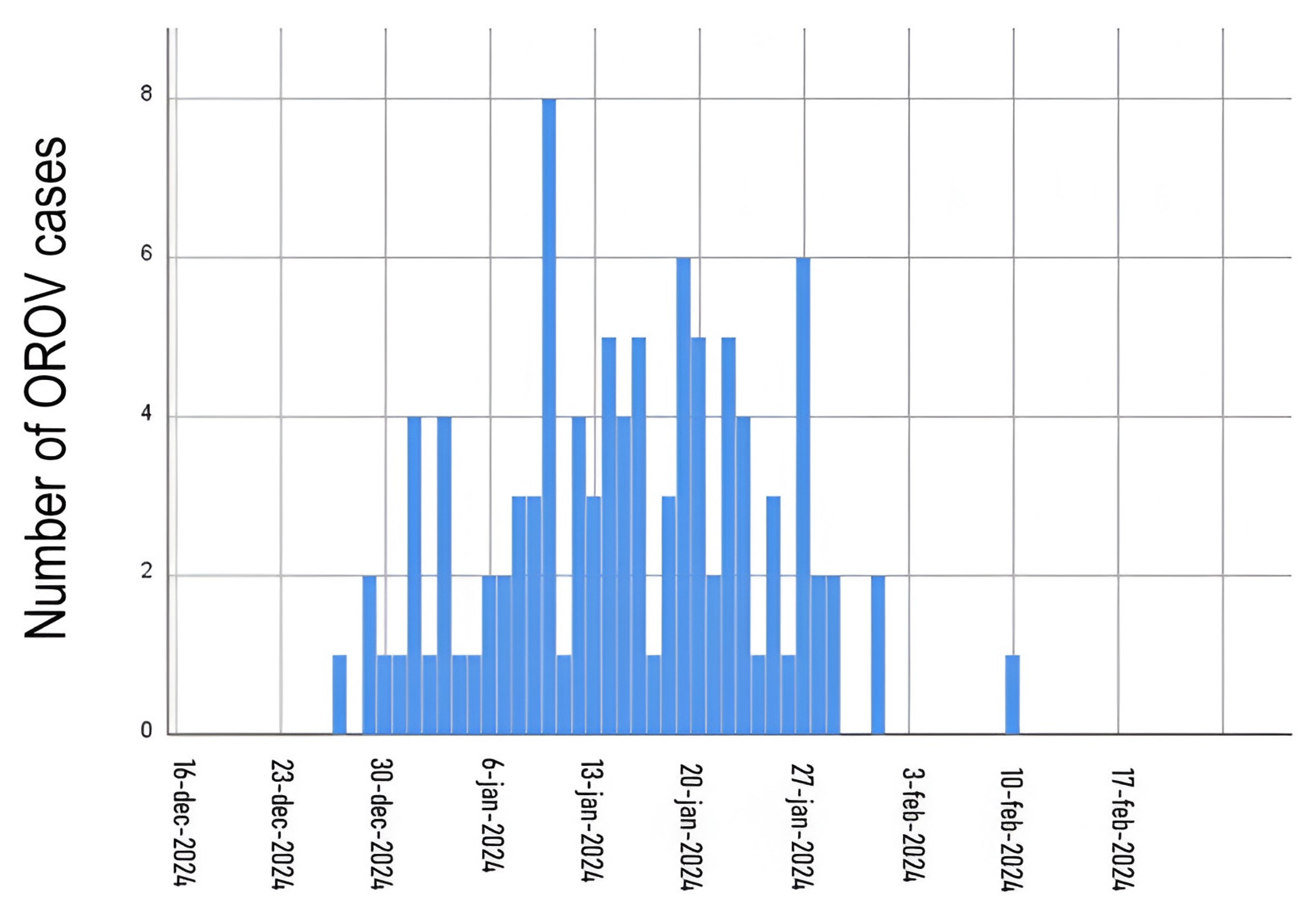 - Confirmed Oropouche Case: any suspected case with a positive result for Oropouche virus (OROV) detection (viral RNA via RT-qPCR or viral antigens) or presenting with antibody seroconversion or a fourfold or greater increase in antibody titer in paired samples taken more than 7–10 days apart (with a convalescent sample taken more than 14 days after symptom onset).