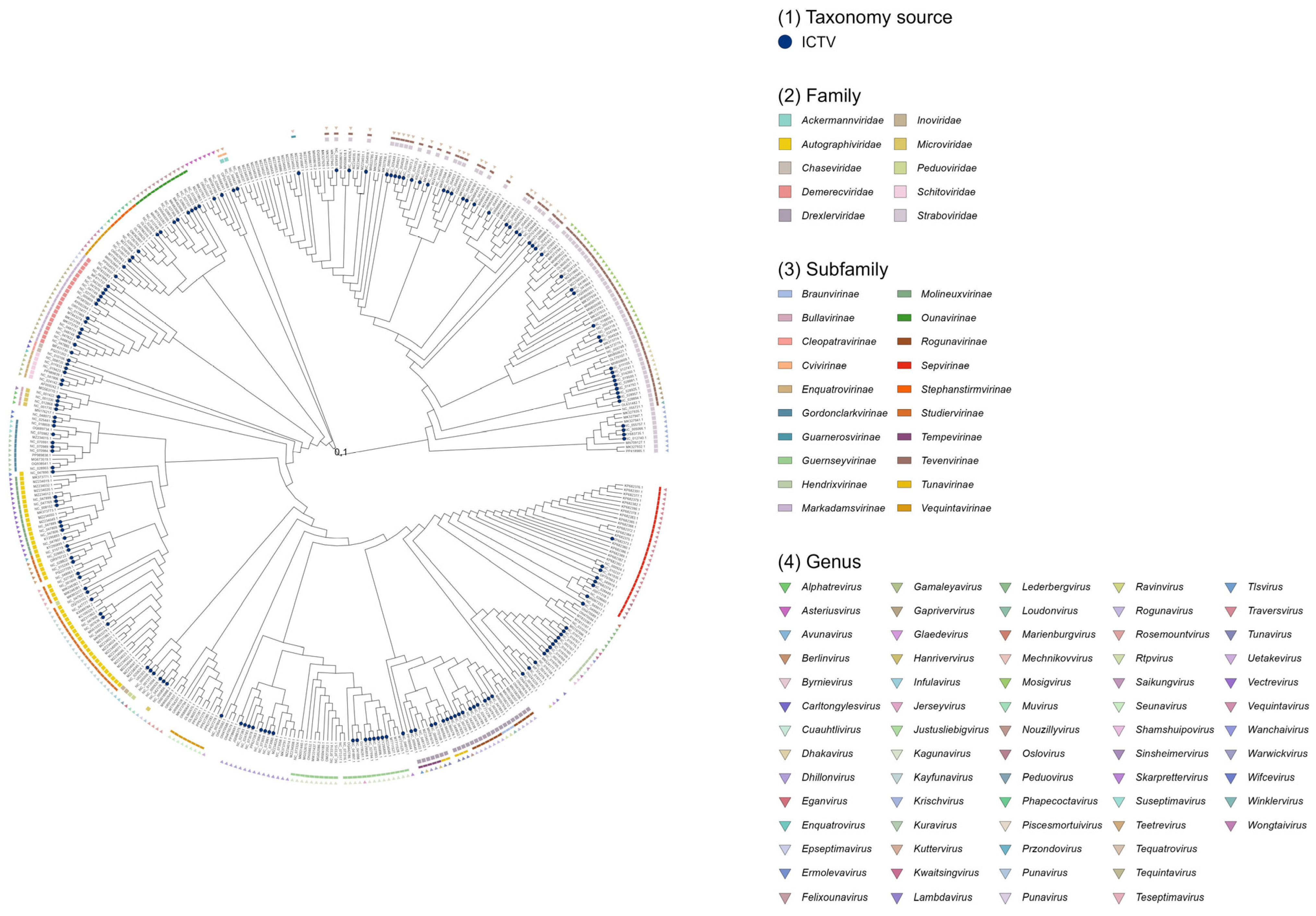 | Family | Subfamily | Genus | NCBI (incl.ictv) | Average Genome Length, Kbp | Virulent (ncbi.all) |