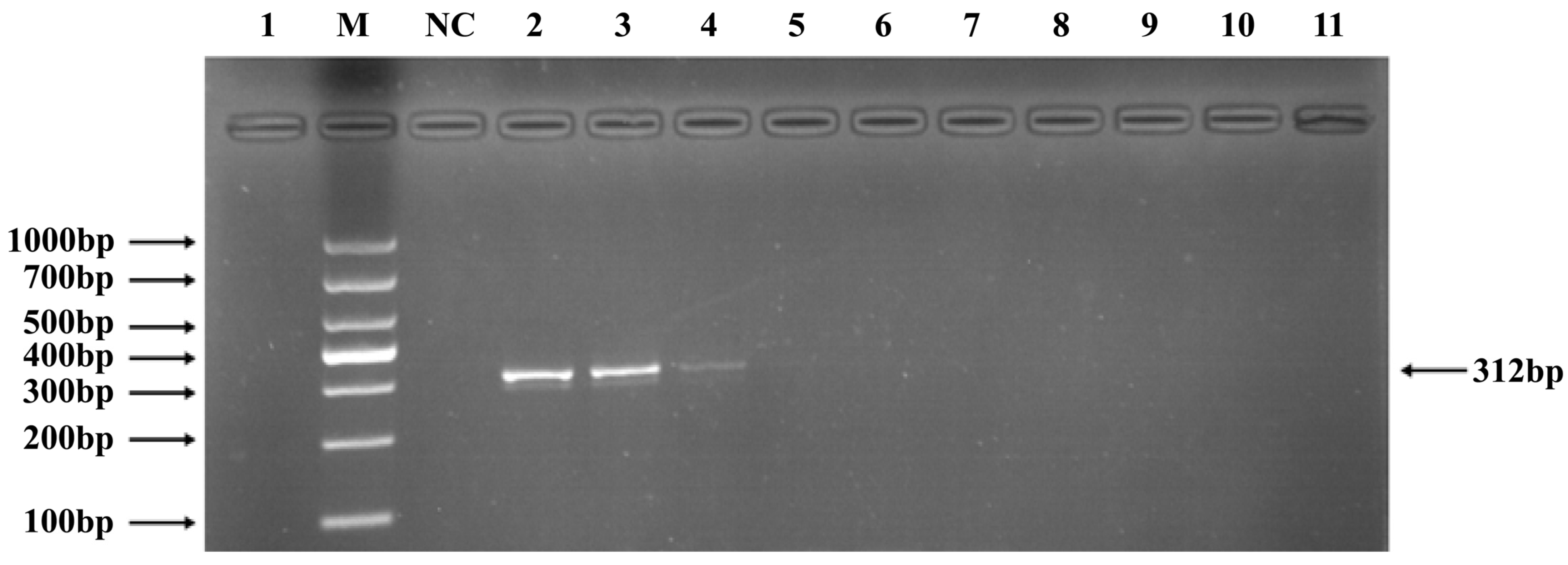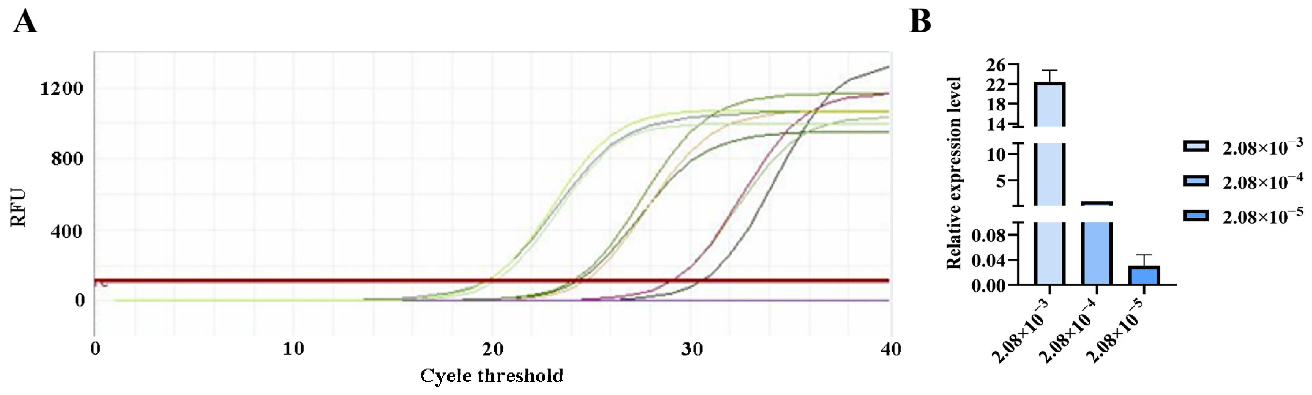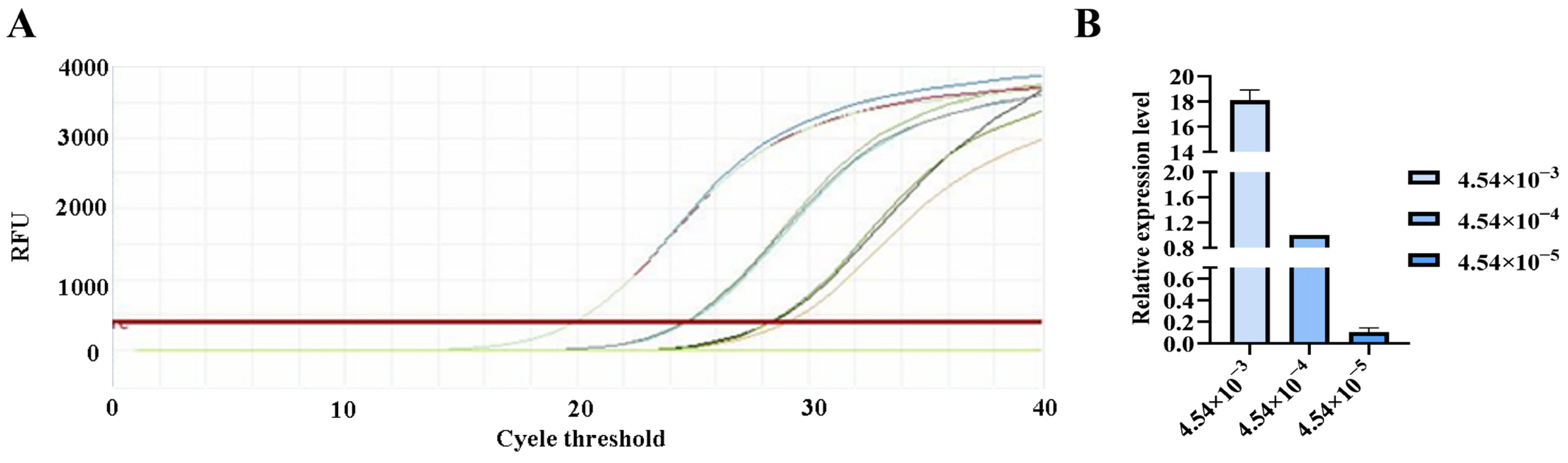 3.4. PCR Verification of Primer Specificity and Sensitivity