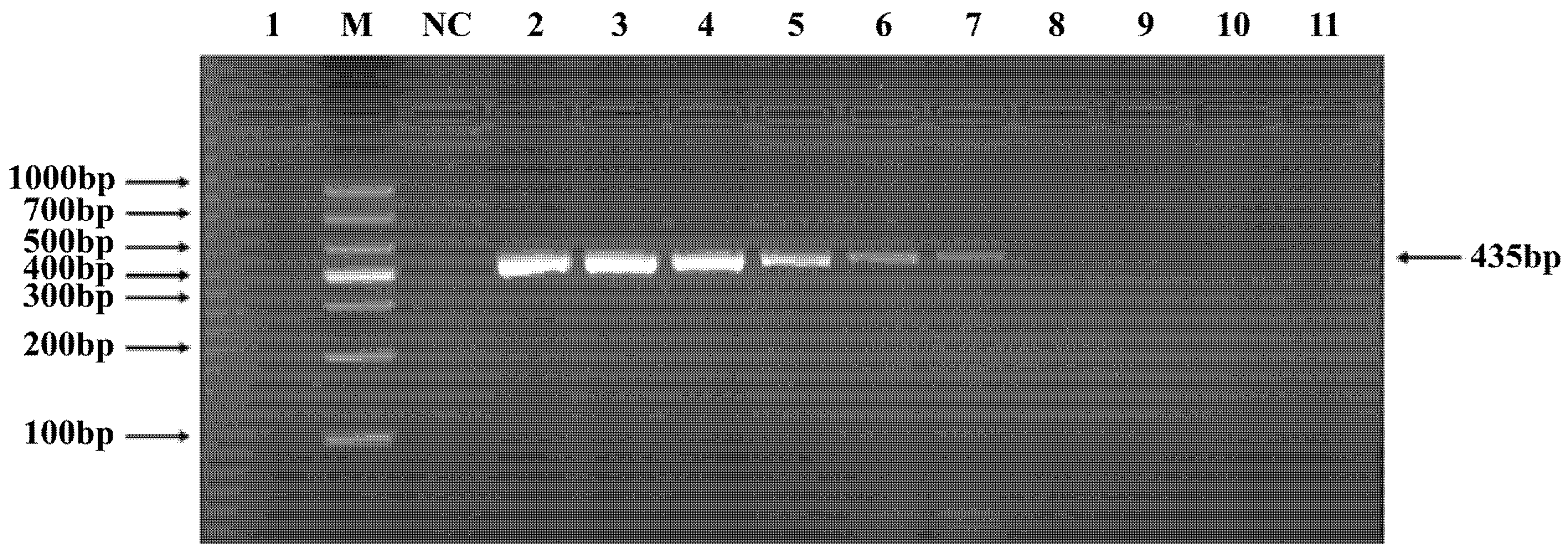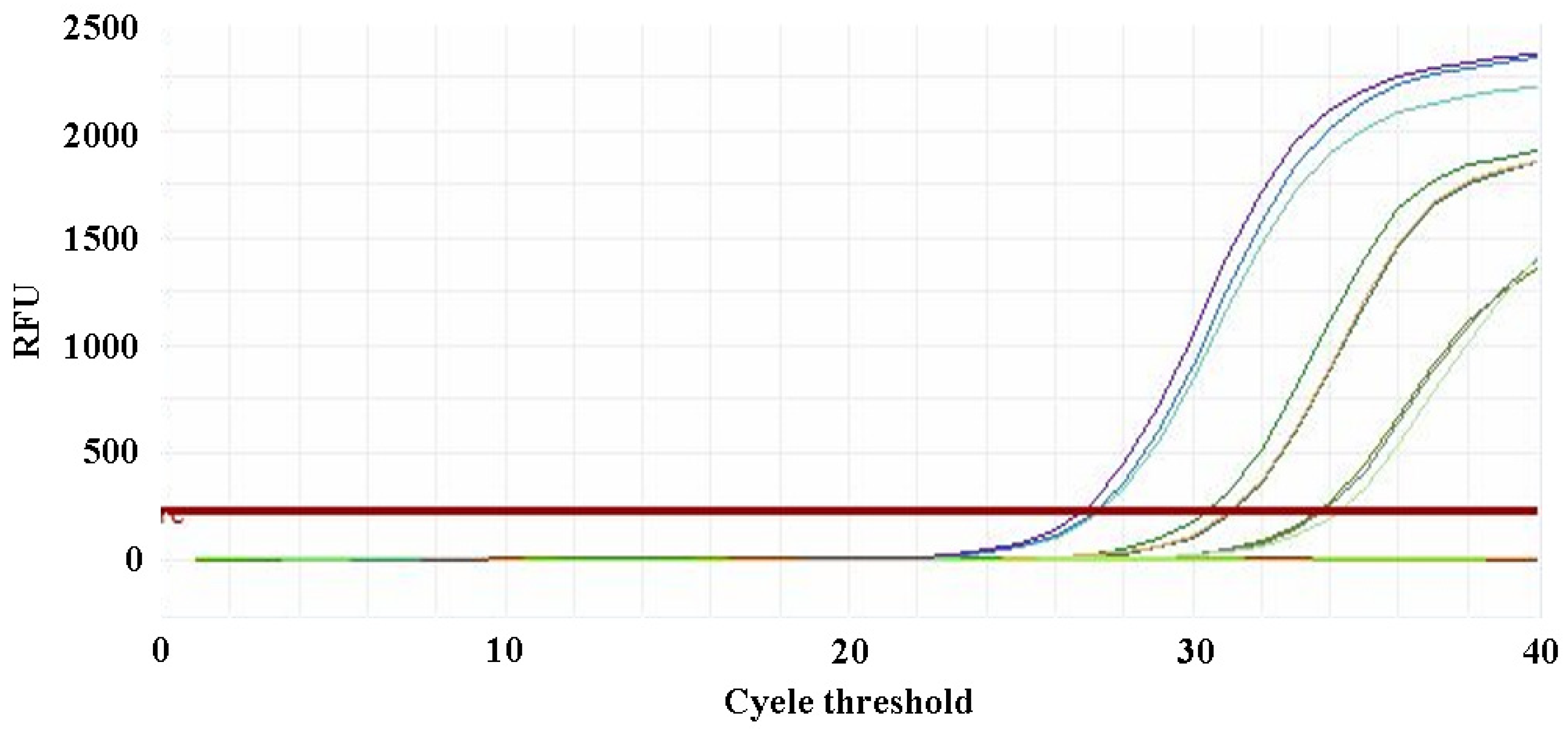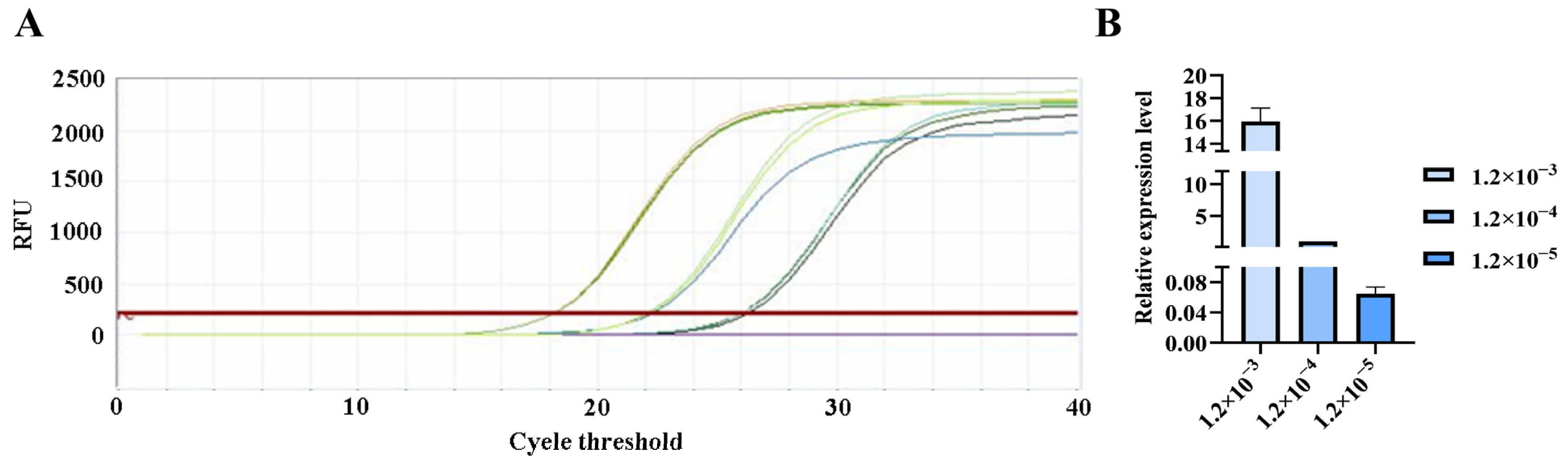 3.4. PCR Verification of Primer Specificity and Sensitivity