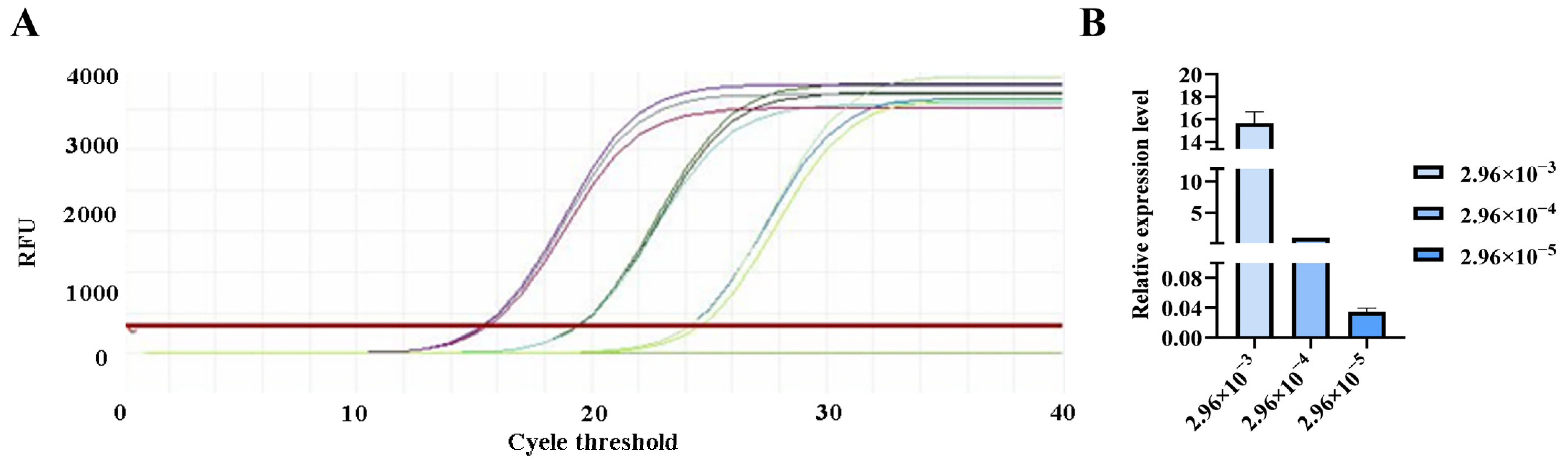 2.5. Validation of Primer Sensitivity and Specificity via qPCR