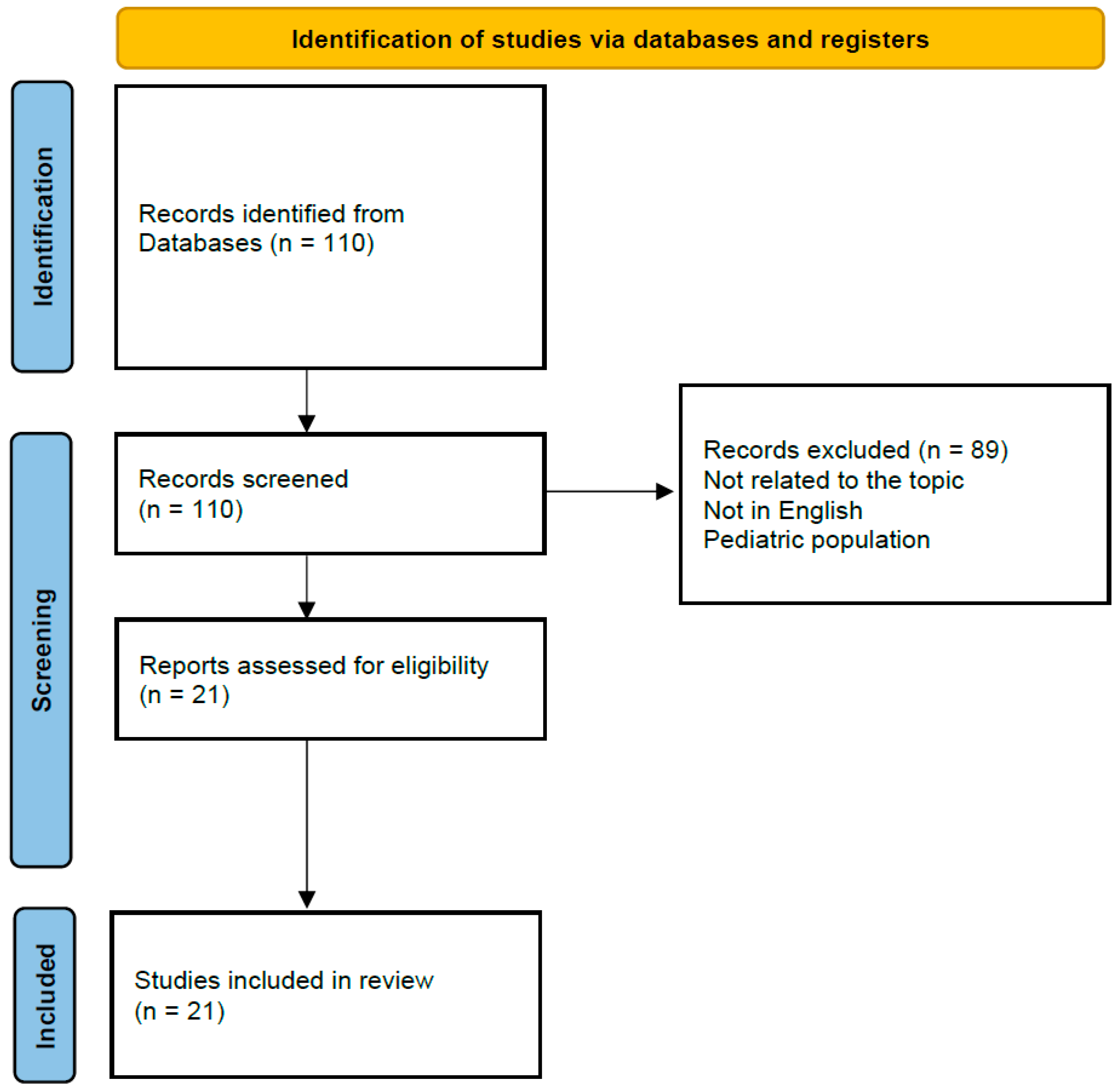 Inclusion criteria were predefined. Eligible studies comprised case reports, small case series, and observational studies describing adult patients (≥18 years) with laboratory-confirmed CNS infection due to Salmonella spp., defined as isolation of the microorganism from cerebrospinal fluid (CSF), brain abscess aspirate, or postmortem CNS tissue. Only cases occurring in the context of documented immunosuppression were included. Recognized immunosuppressive conditions encompassed HIV-infection (regardless of CD4+ count or viral load), chronic corticosteroid therapy, chemotherapy, malignancy, organ transplantation, or treatment with biologic or targeted immunomodulatory agents. Exclusion criteria included pediatric cases (<18 years), animal studies, articles in languages other than English, reviews without original data, and reports of Salmonella spp. infections limited to non-CNS sites (e.g., bacteremia, osteomyelitis, or endocarditis) without neurological involvement.