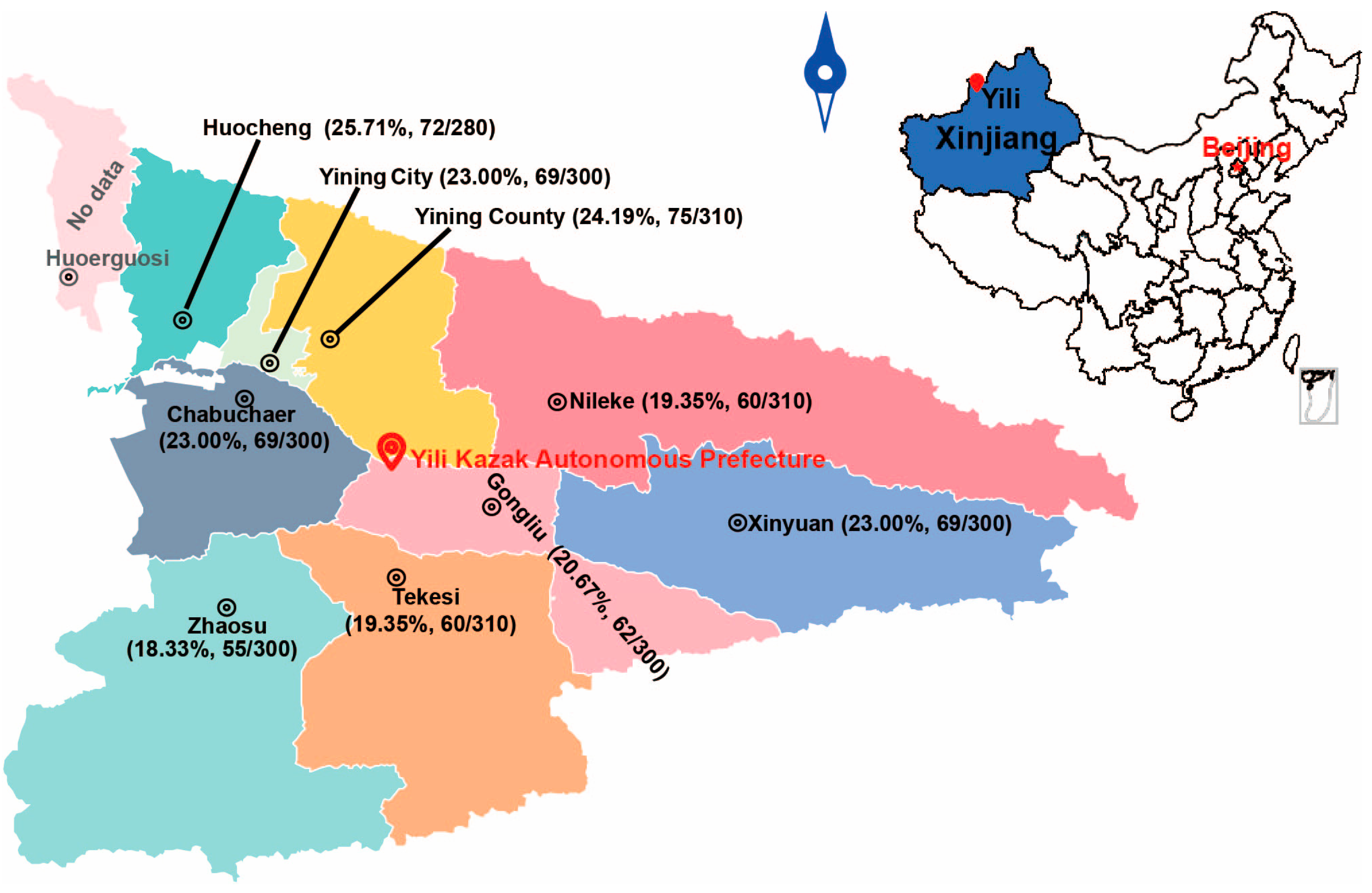 15], as well as the 2.3% (390/17,215) documented in Emin County of Tacheng Region by Yang et al. [