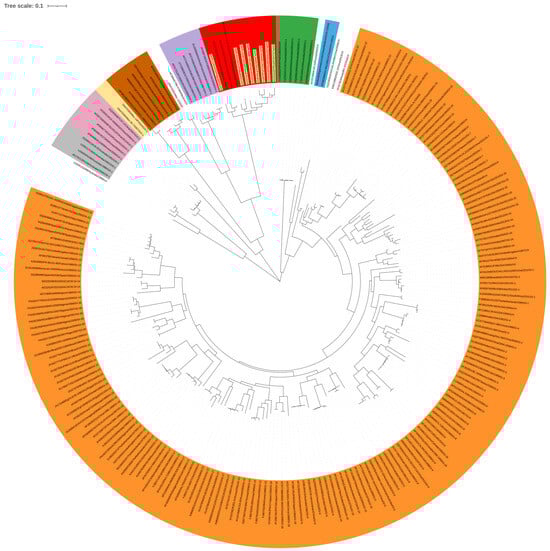 20. Letunic, I.; Bork, P. Interactive Tree Of Life (iTOL) v5: An online tool for phylogenetic tree display and annotation. Nucleic Acids Res. 2021, 49, W293–W296. [Google Scholar] [CrossRef]