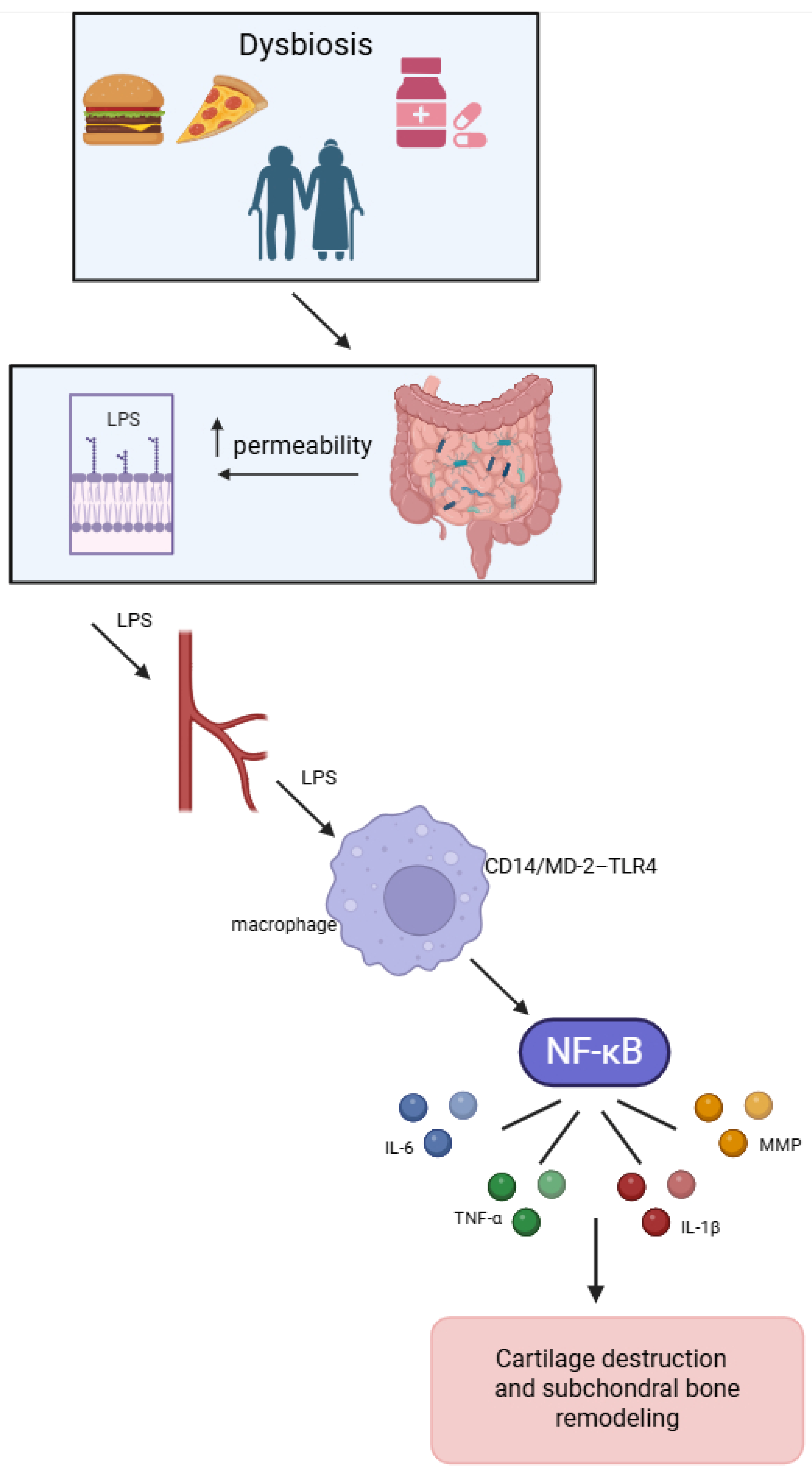 - Guido, G.; Ausenda, G.; Iascone, V.; Chisari, E. Gut permeability and osteoarthritis, towards a mechanistic understanding of the pathogenesis: A systematic review. Ann. Med. 2021, 53, 2380–2390. [Google Scholar] [CrossRef] [PubMed]