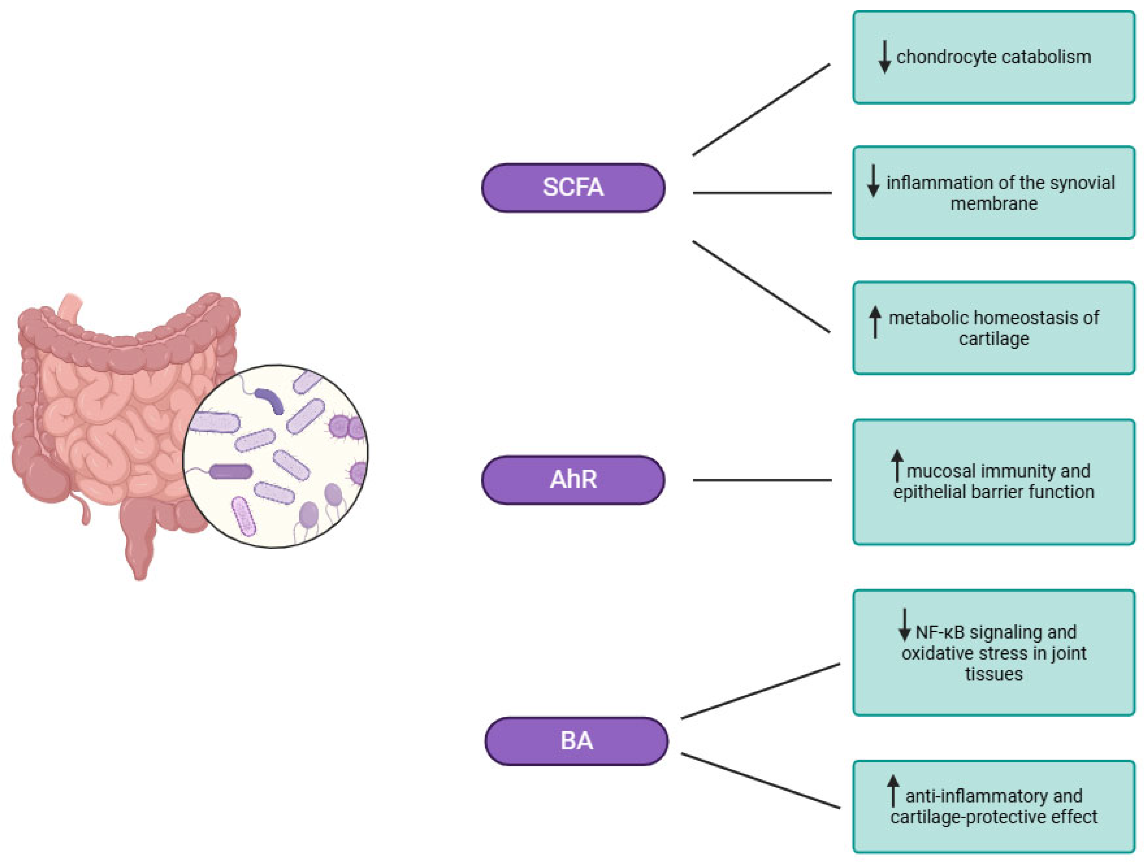 - Han, J.; Meng, X.; Kong, H.; Li, X.; Chen, P.; Zhang, X.A. Links between short-chain fatty acids and osteoarthritis from pathology to clinic via gut-joint axis. Stem Cell Res. Ther. 2025, 16, 251. [Google Scholar] [CrossRef] [PubMed]