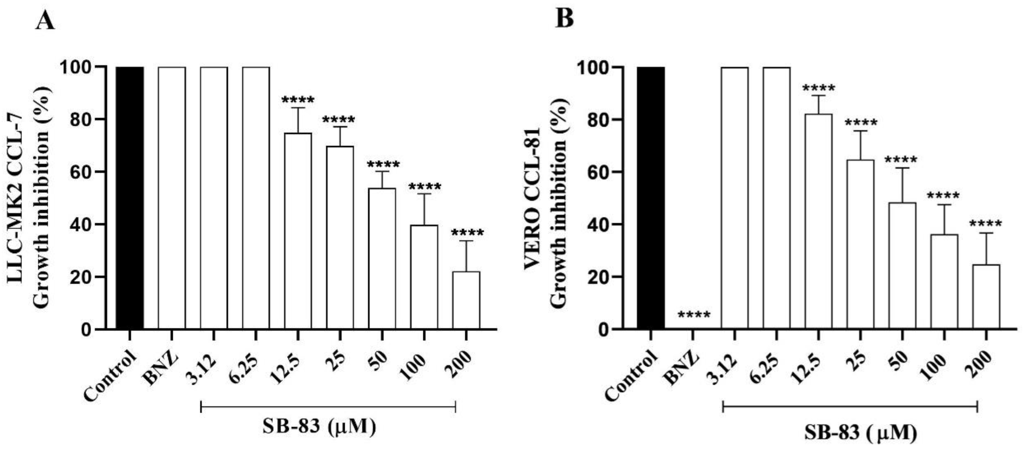 3.6. Effect of SB-83 on Trypanothione Reductase (TR) Activity