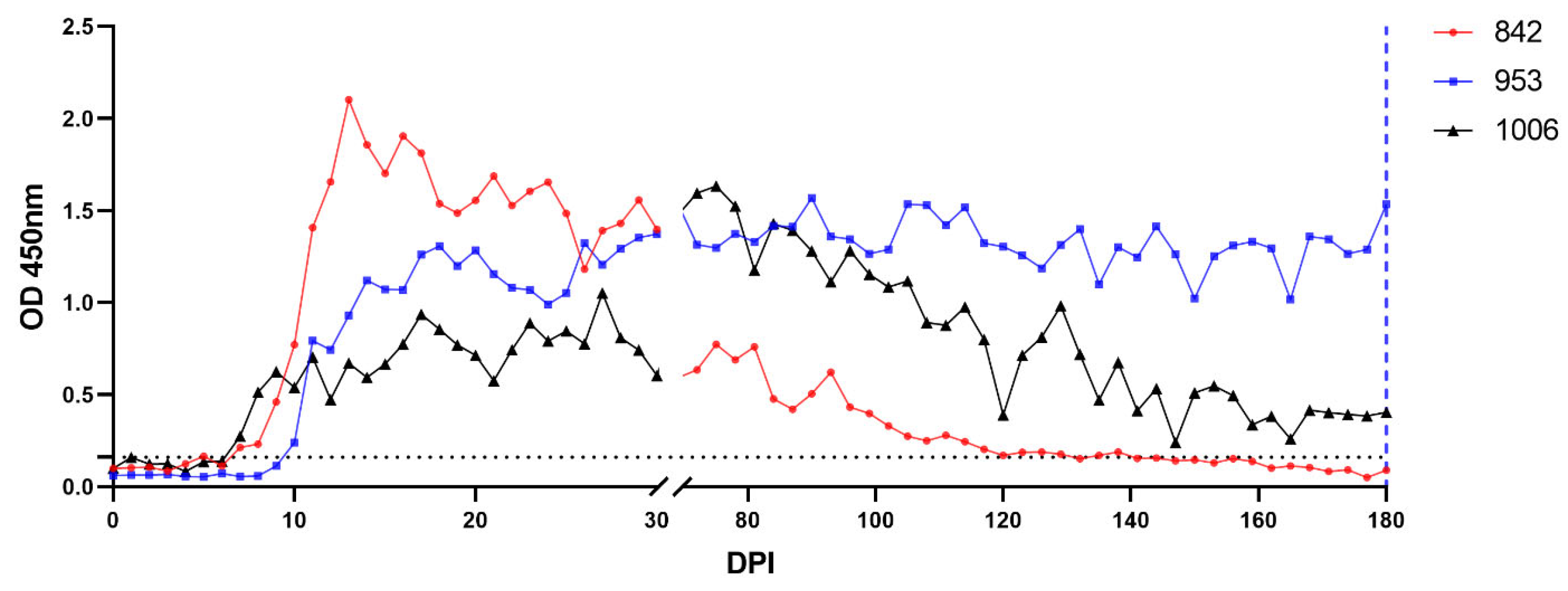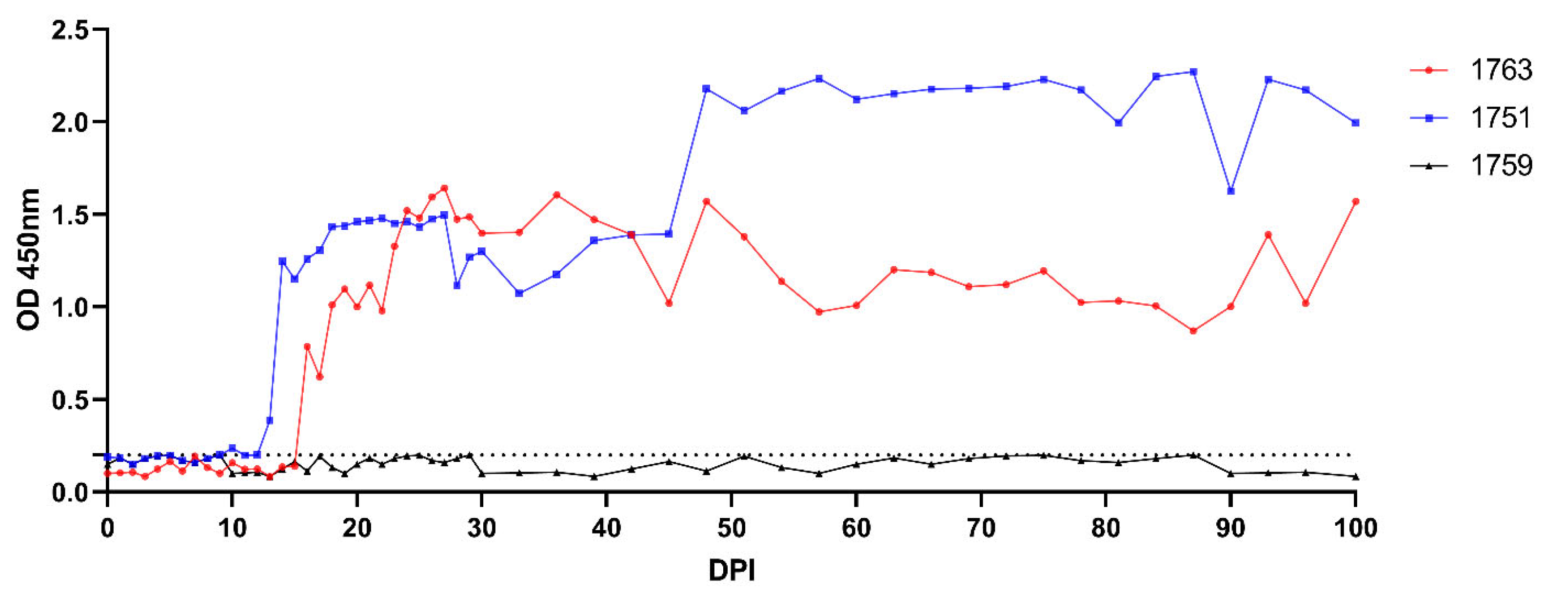 2.4. Long-Term Detection of B. ovis DNA and Antibody Response in Experimentally Infected Sheep