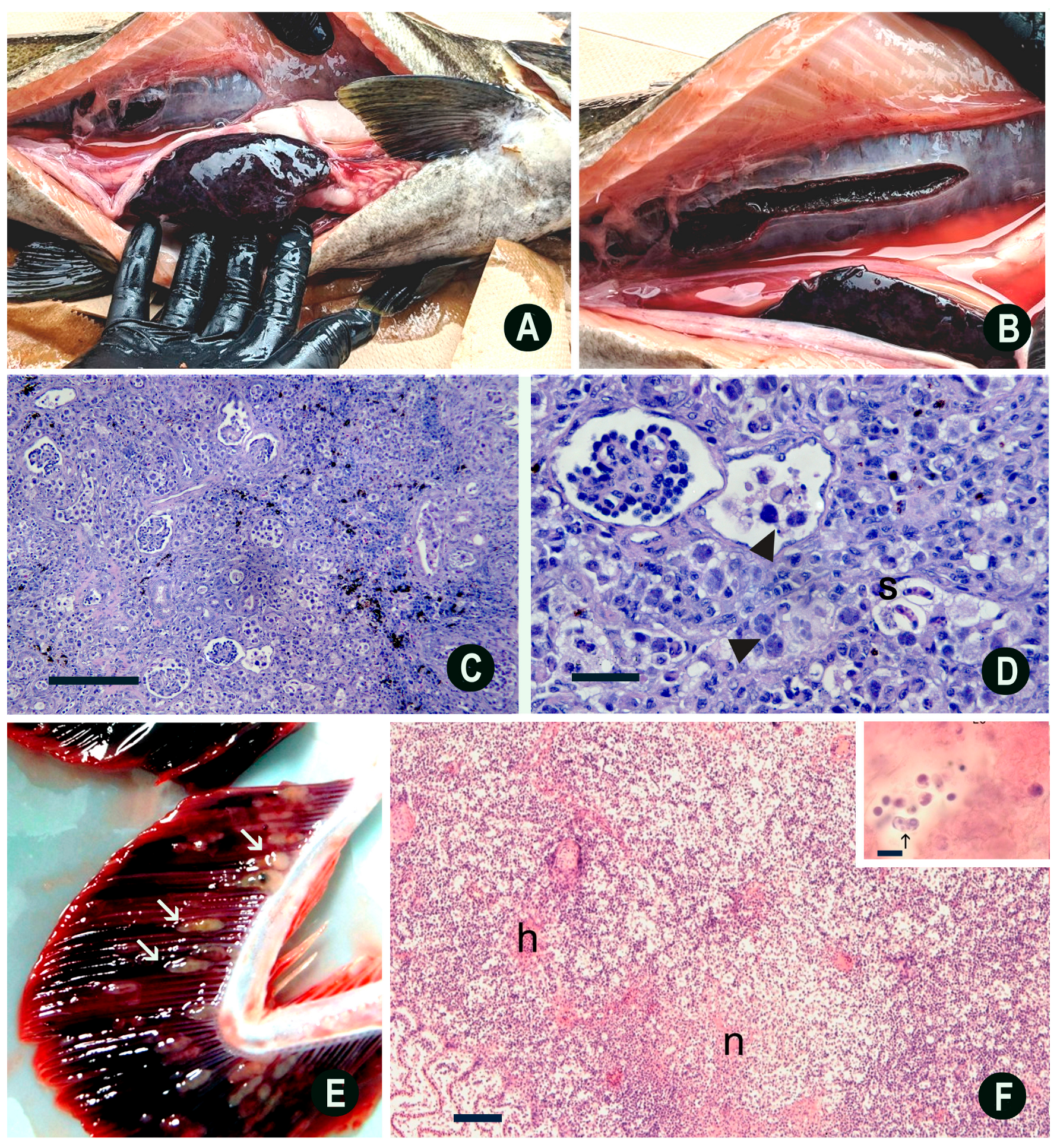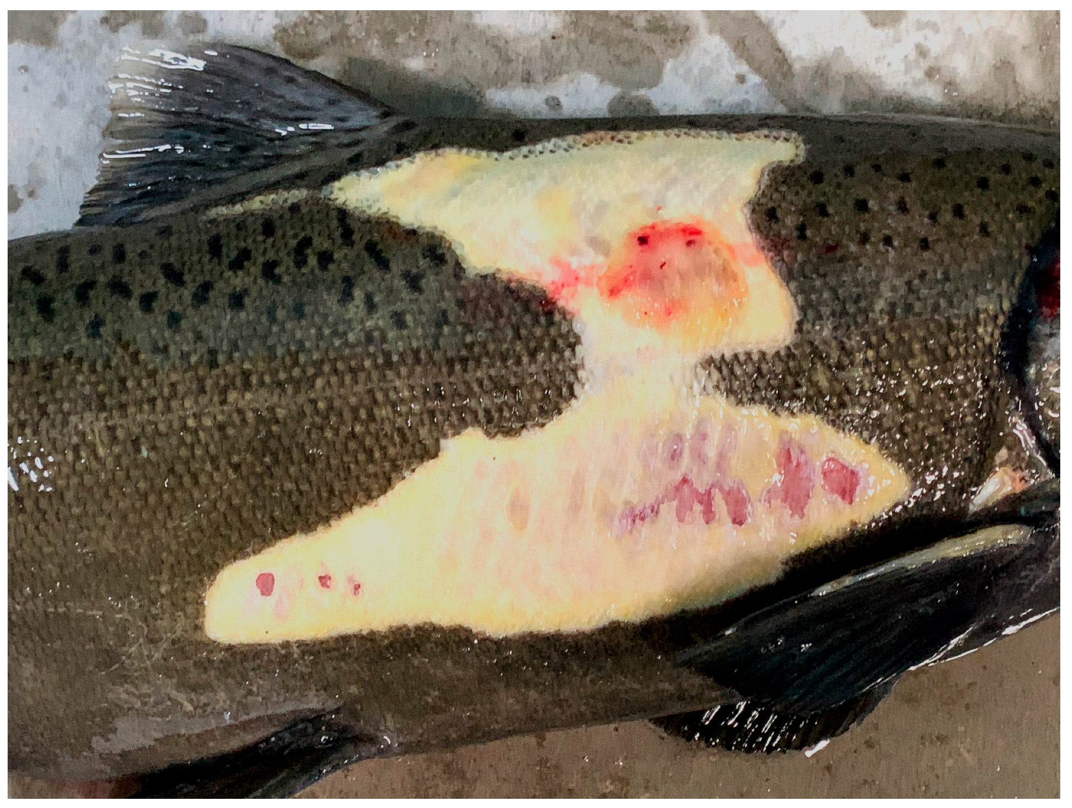 - Alaska Department of Fish and Game (ADF&G) (Fish Pathology Laboratory, Anchorage, AK 99518, USA). Fish Pathology Laboratory Report Accession Number 2018-0011. Unpublished. 2018. [Google Scholar]