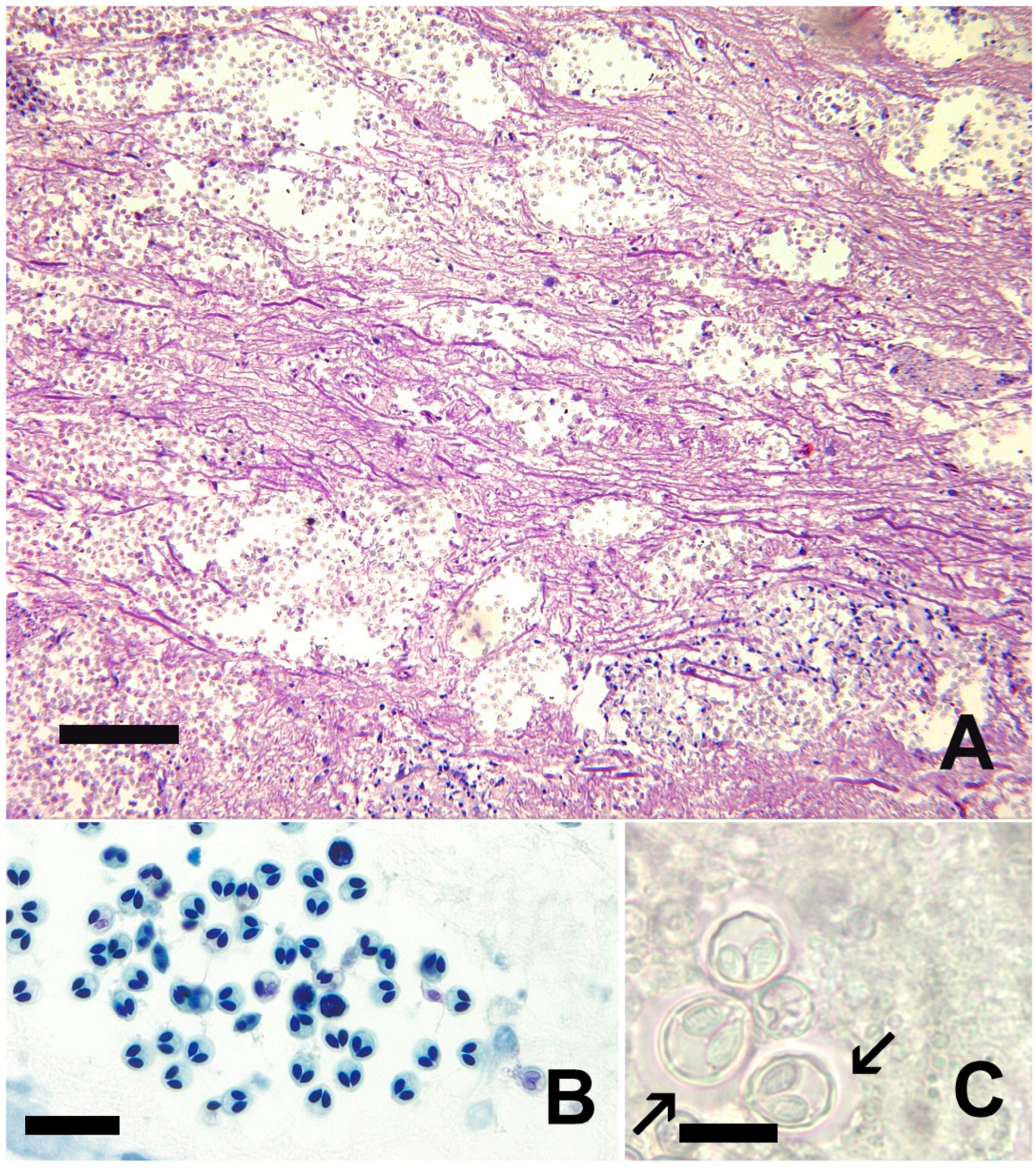 | Loma salmonae | All | F, M | Gi, K, S, Re | Xenomas, branchitis | CA, OR, WA, BC, AK | |
