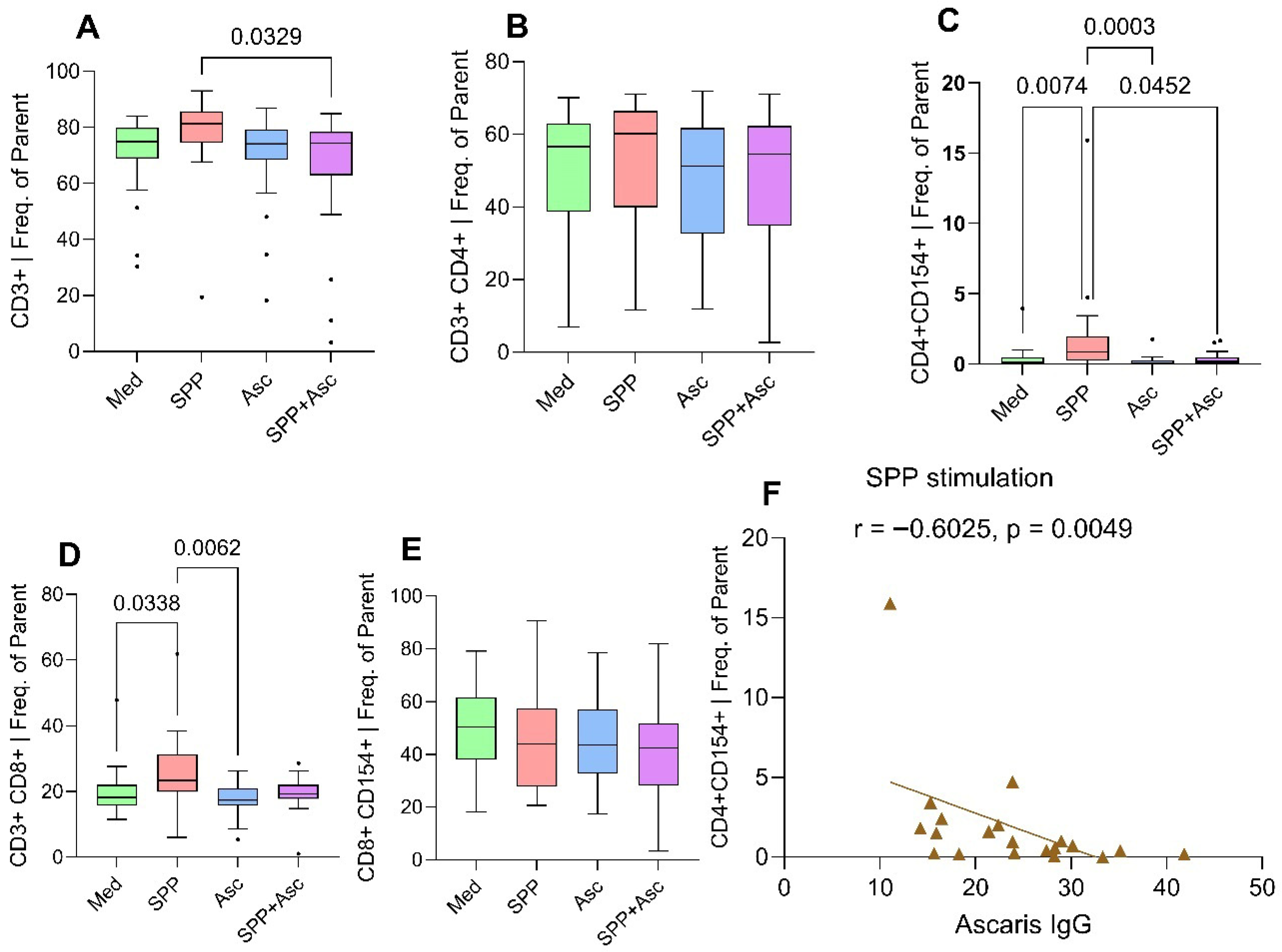 | A. lumbricoides IgG | −0.219 | 0.09 | −0.499 | −2.441 | 0.025 | [−0.408, −0.031] |
