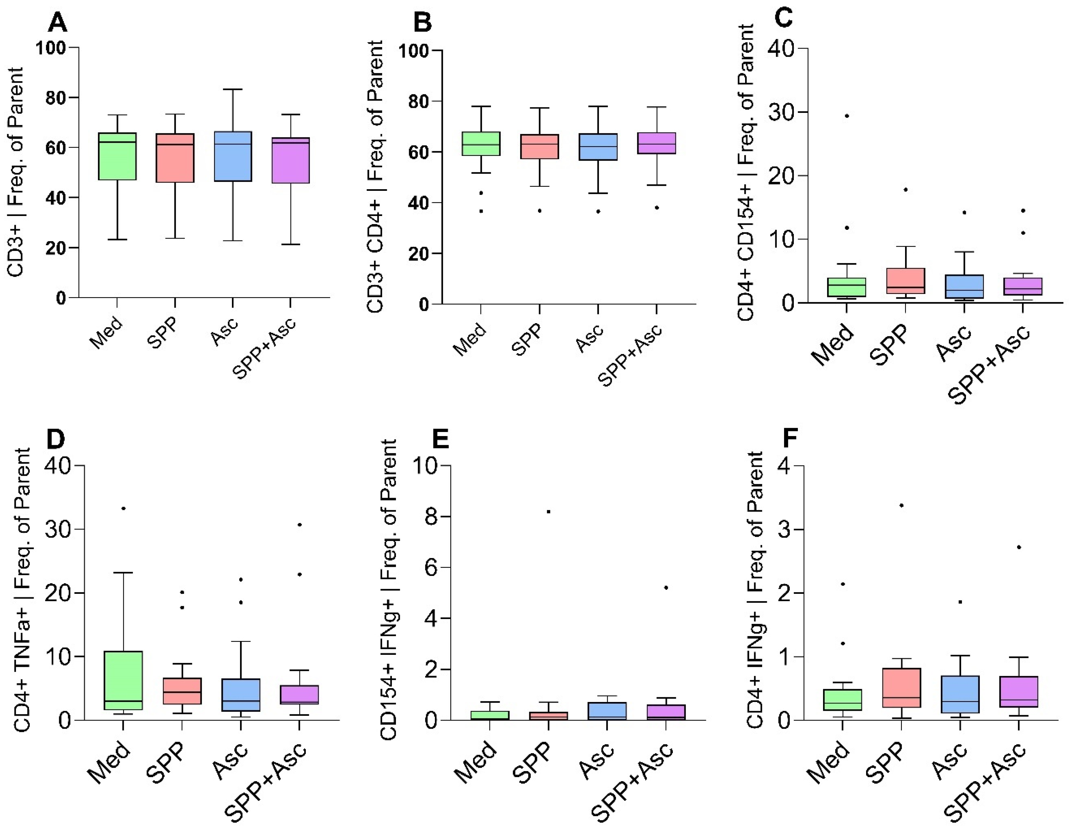 3.3. A. lumbricoides Antigens Suppress SARS-CoV-2-Induced CD3+ and CD4+CD154+ T Cells in O. volvulus-Infected Individuals