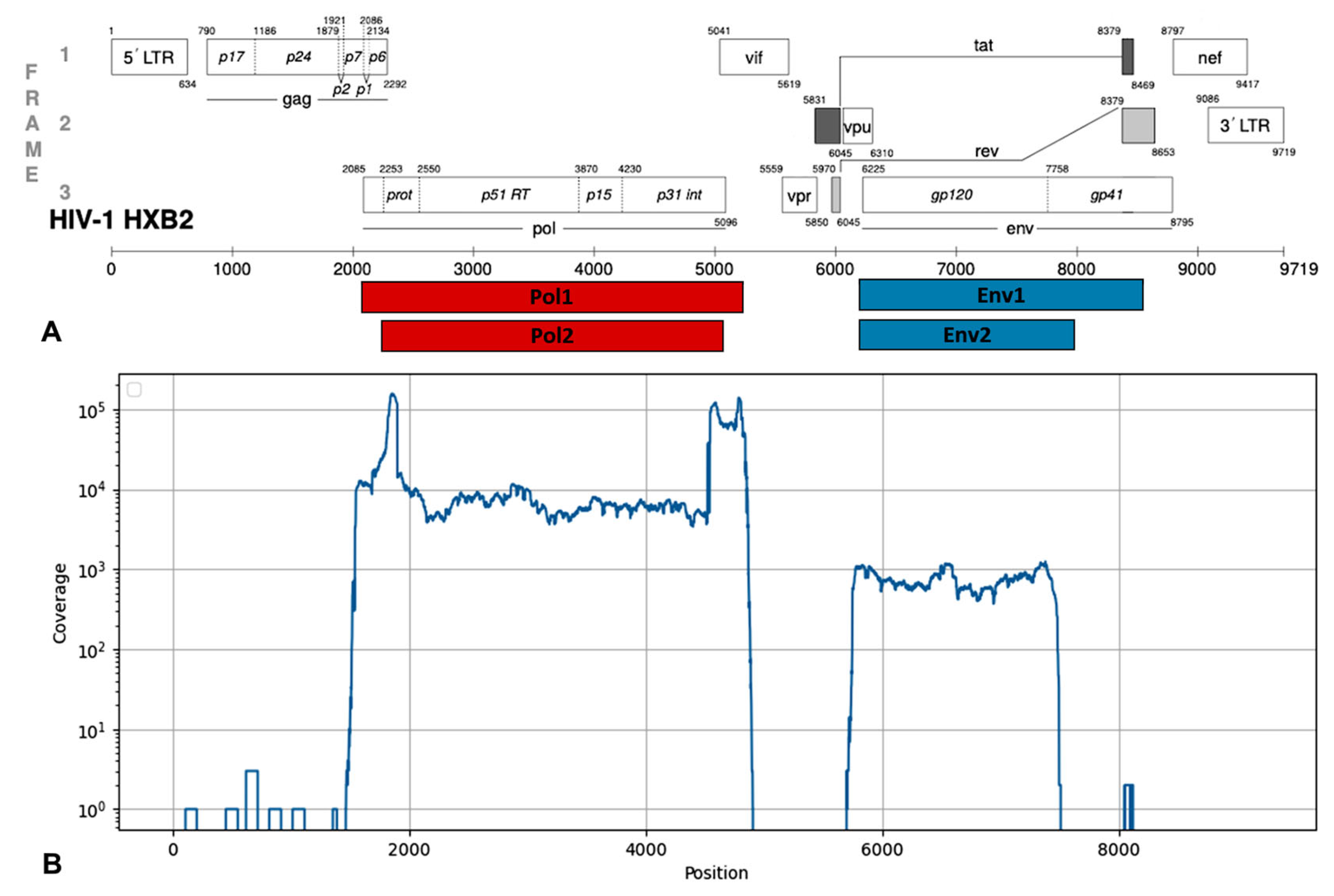 3.1. Testing of the NGS Protocol for HIV-1 pol and env Genes