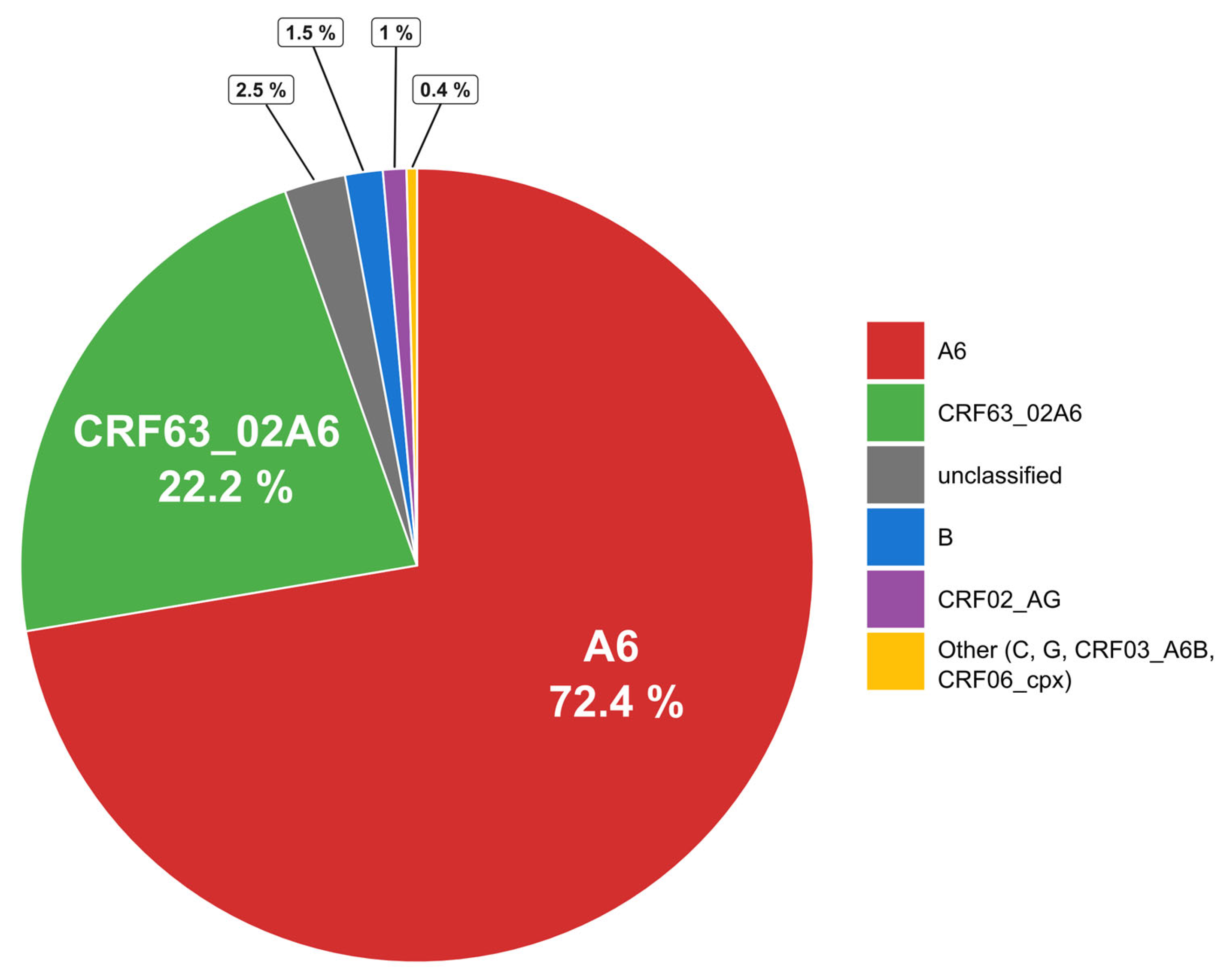 - Antonova, A.; Kazennova, E.; Lebedev, A.; Ozhmegova, E.; Kuznetsova, A.; Tumanov, A.; Bobkova, M. Recombinant Forms of HIV-1 in the Last Decade of the Epidemic in the Russian Federation. Viruses 2023, 15, 2312. [Google Scholar] [CrossRef]