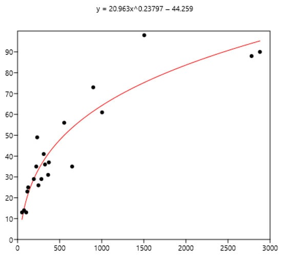 The mean FEC is related significantly (rs) to variance (0.79), FEC = 0 (−0.80), FEC < 100 (−0.86), FEC > 200 (0.90), and FEC > 400 (0.94) using the data set of the three countries. The non-linear fit was performed between the mean and the different percentages of FECs. The equations are in Figure 8, Figure 9 and Figure 10.