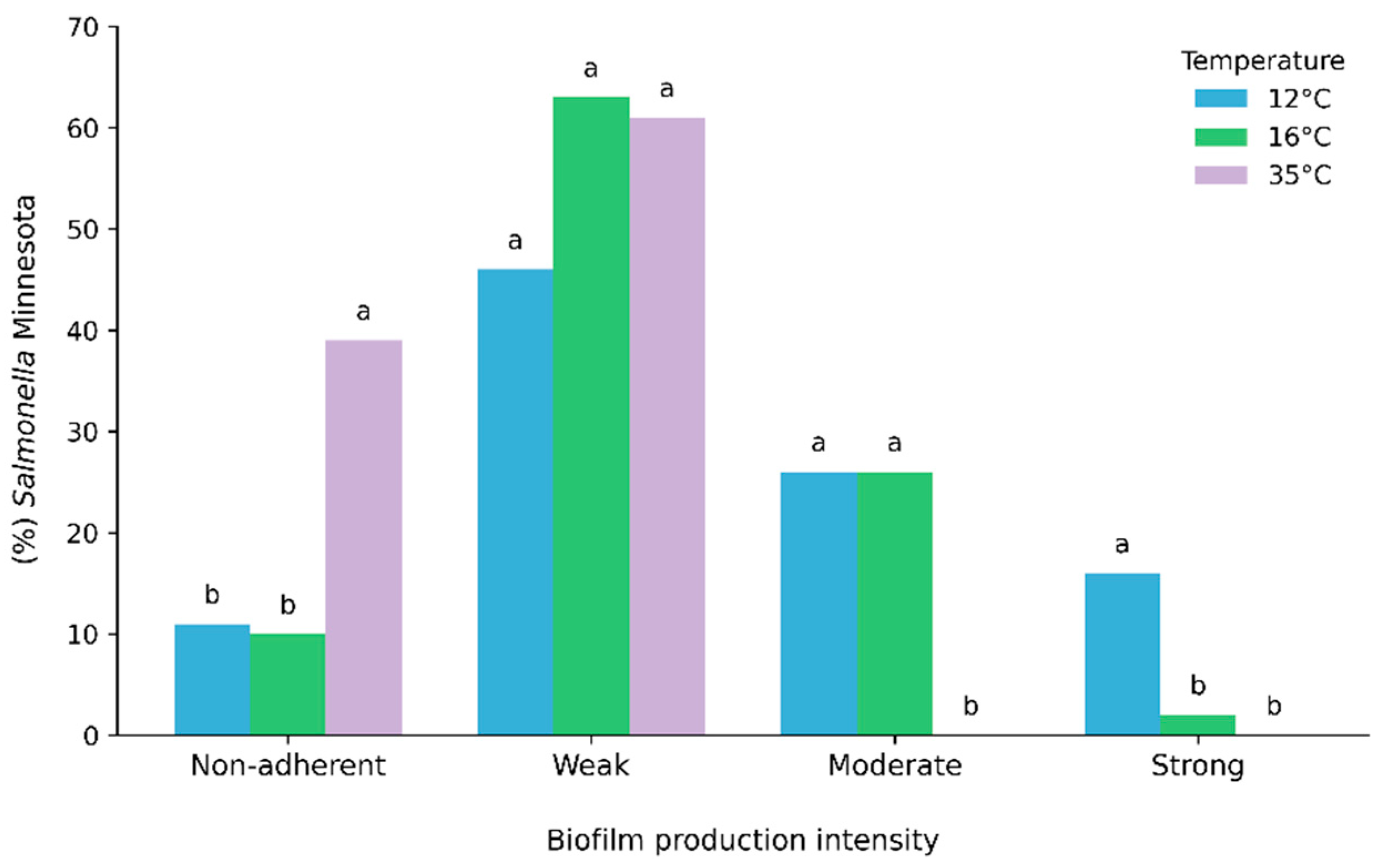 - Borges, K.A.; Furian, T.Q.; Souza, S.N.; Menezes, R.; Tondo, E.C.; Salle, C.T.P.; Moraes, H.L.S.; Nascimento, V.P. Biofilm Formation Capacity of Salmonella Serotypes at Different Temperature Conditions. Pesq. Vet. Bras. 2018, 38, 71–76. [Google Scholar] [CrossRef]