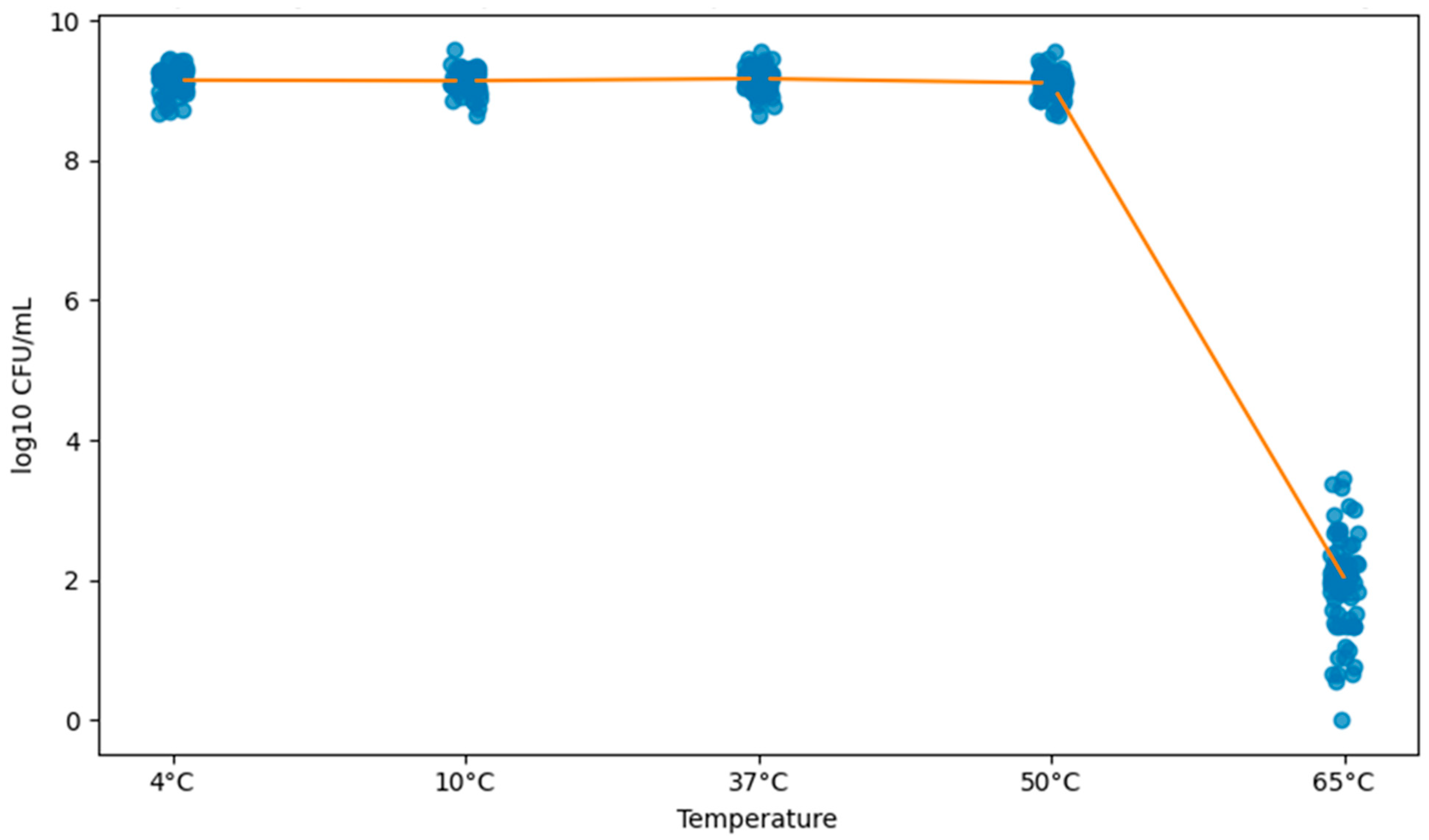3.5. Thermal Tolerance of Salmonella Minnesota Isolates