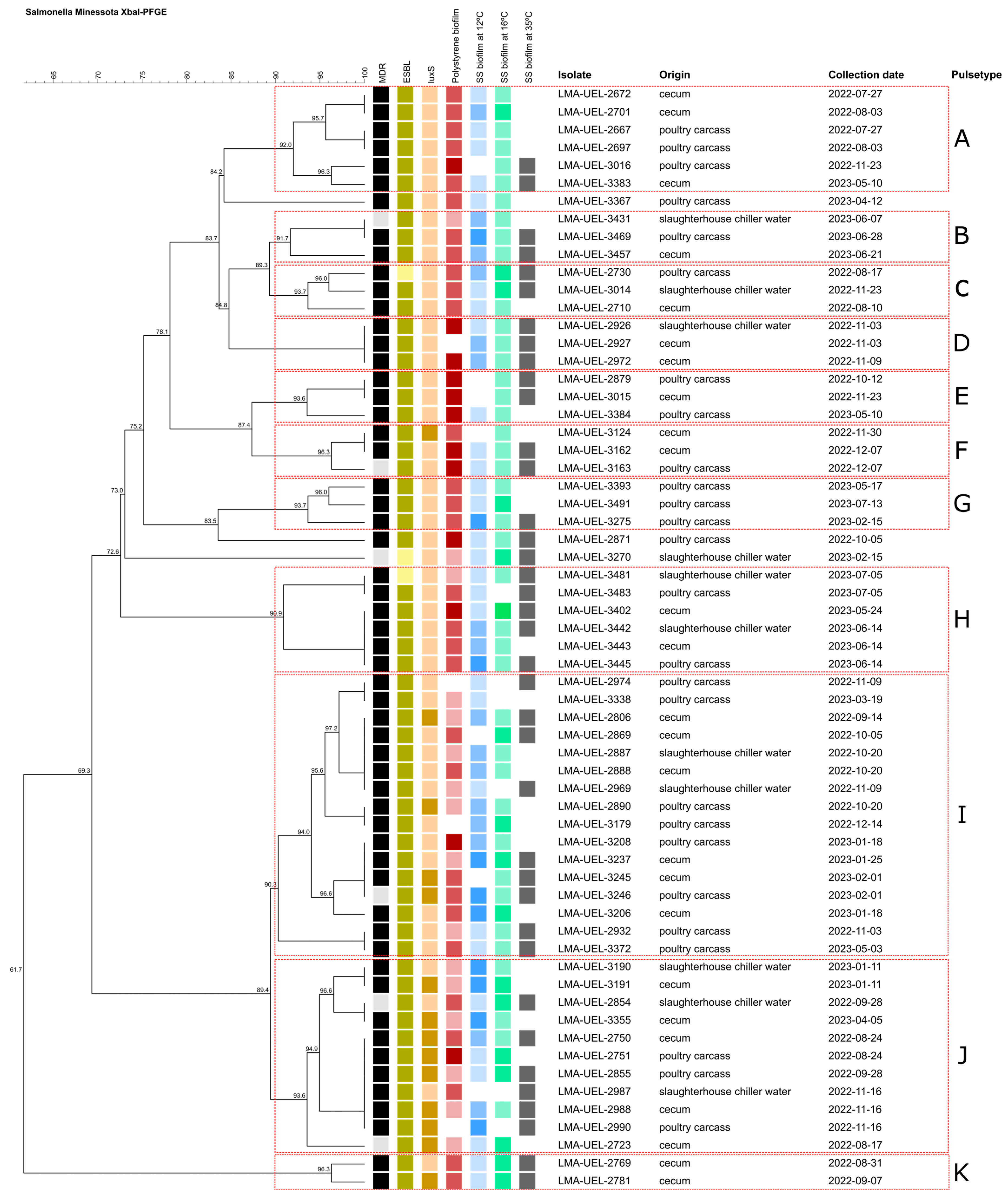 3.6. Genetic Relatedness by Pulsed-Field Gel Electrophoresis (PFGE)