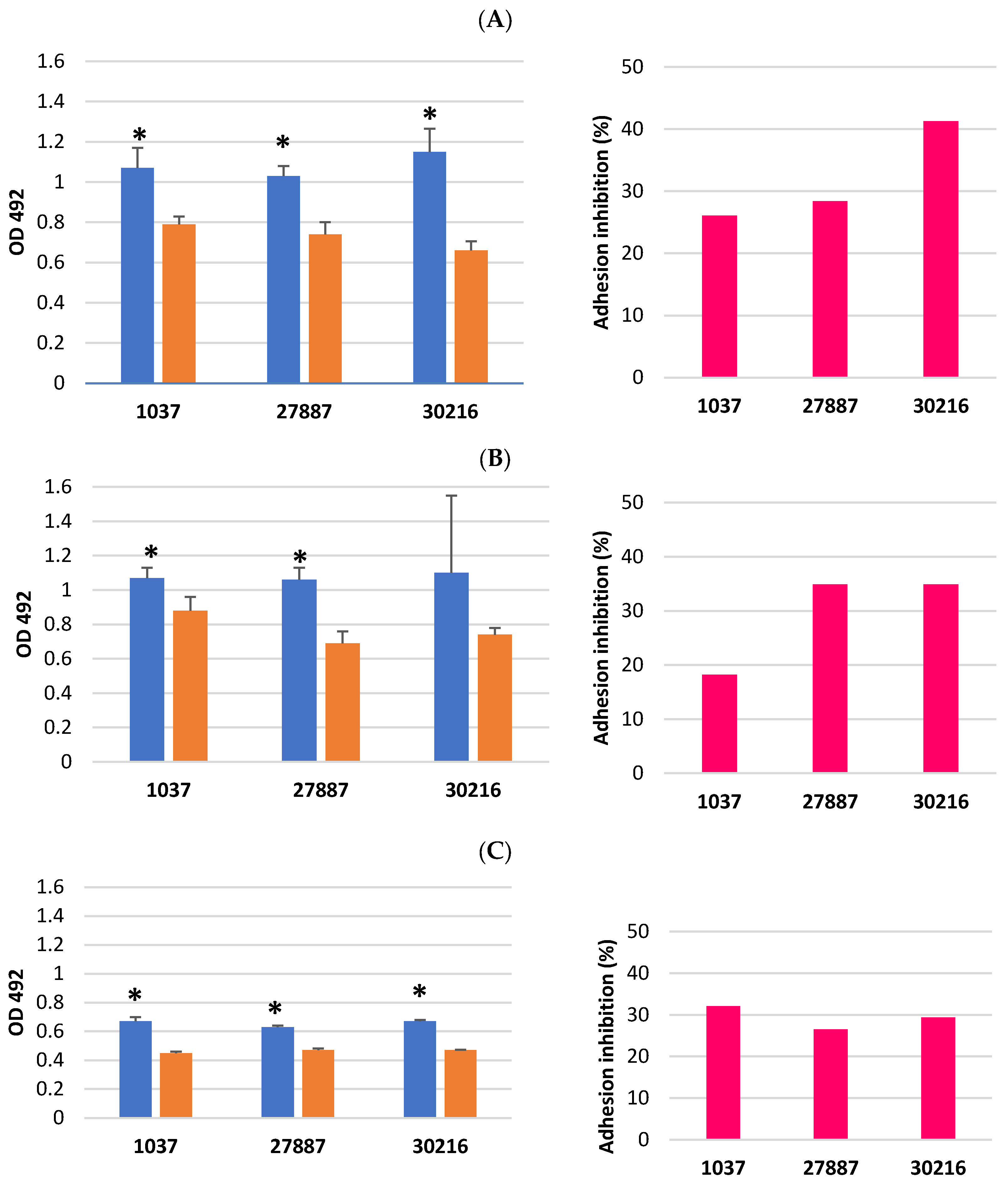 2.2. Evaluation of Adhesion of MRSA Isolates Treated with TC to Proteins of the Host Plasma and Extracellular Matrix