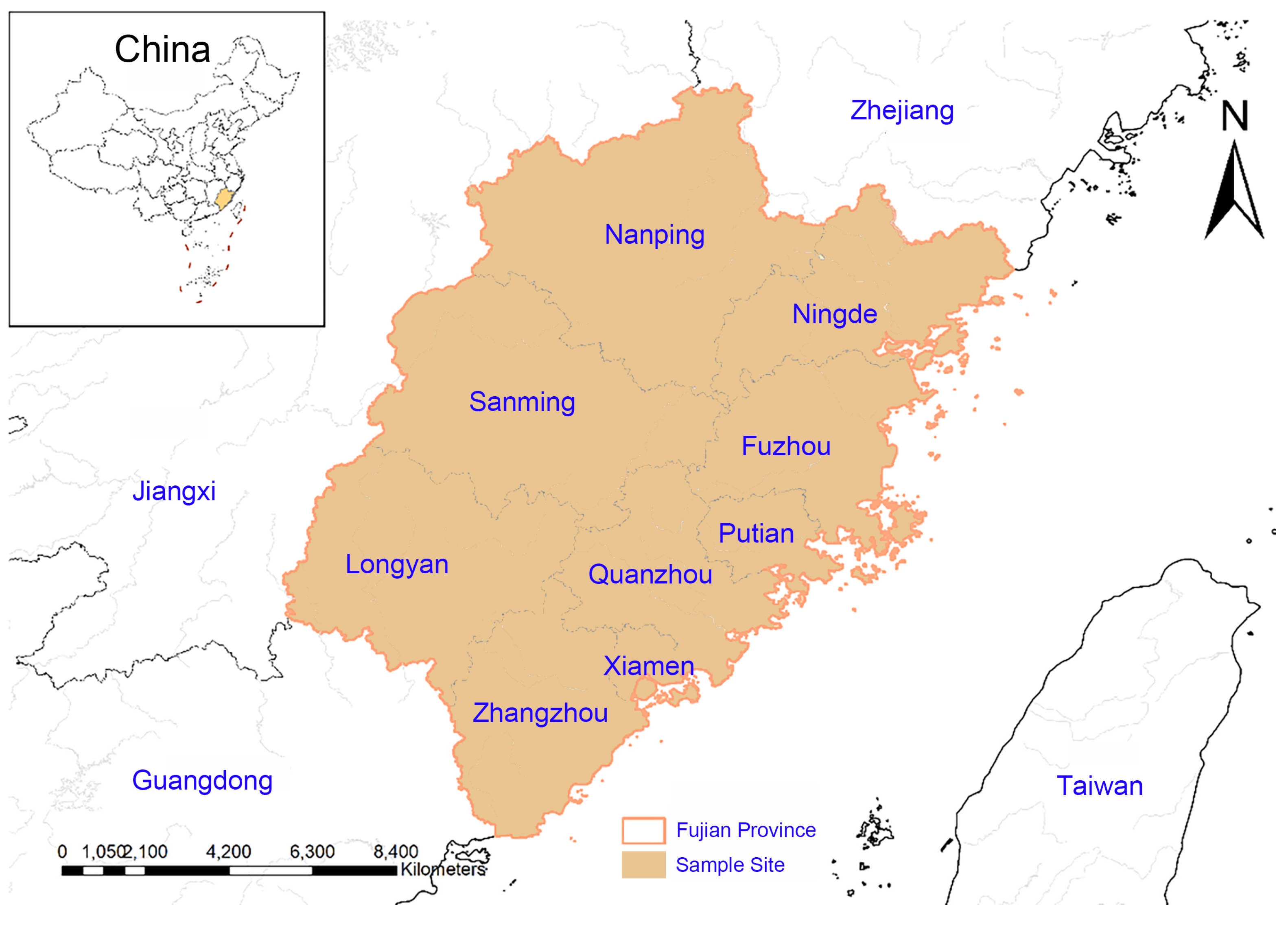 Figure 1. Distribution of sampling sites in Fujian.