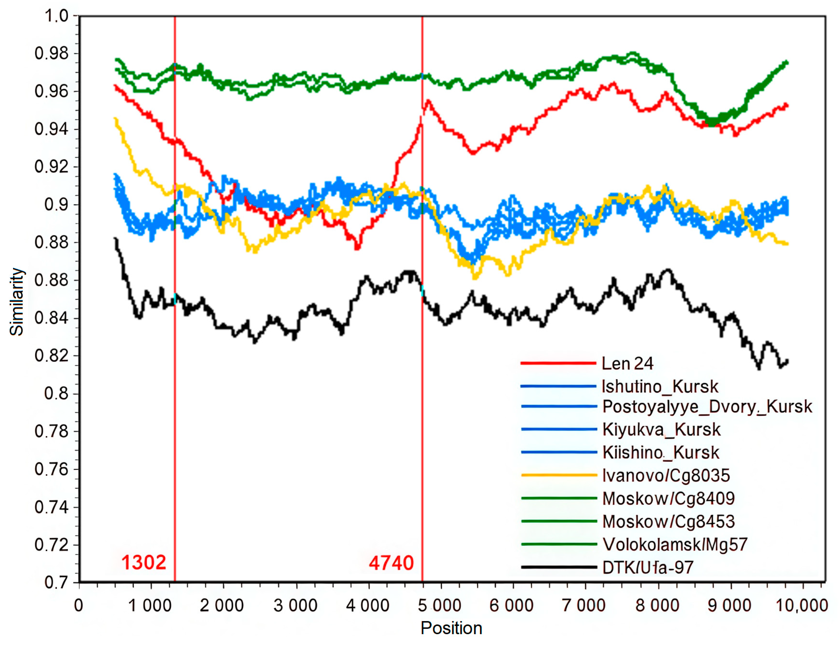 - Kabwe, E.; Shamsutdinov, A.F.; Suleimanova, S.; Martynova, E.V.; Ismagilova, R.K.; Shakirova, V.G.; Savitskaya, T.A.; Isaeva, G.S.; Rizvanov, A.A.; Khaiboullina, S.F.; et al. Puumala Orthohantavirus Reassortant Genome Variants Likely Emerging in the Watershed Forests. Int. J. Mol. Sci. 2023, 24, 1018. [Google Scholar] [CrossRef]