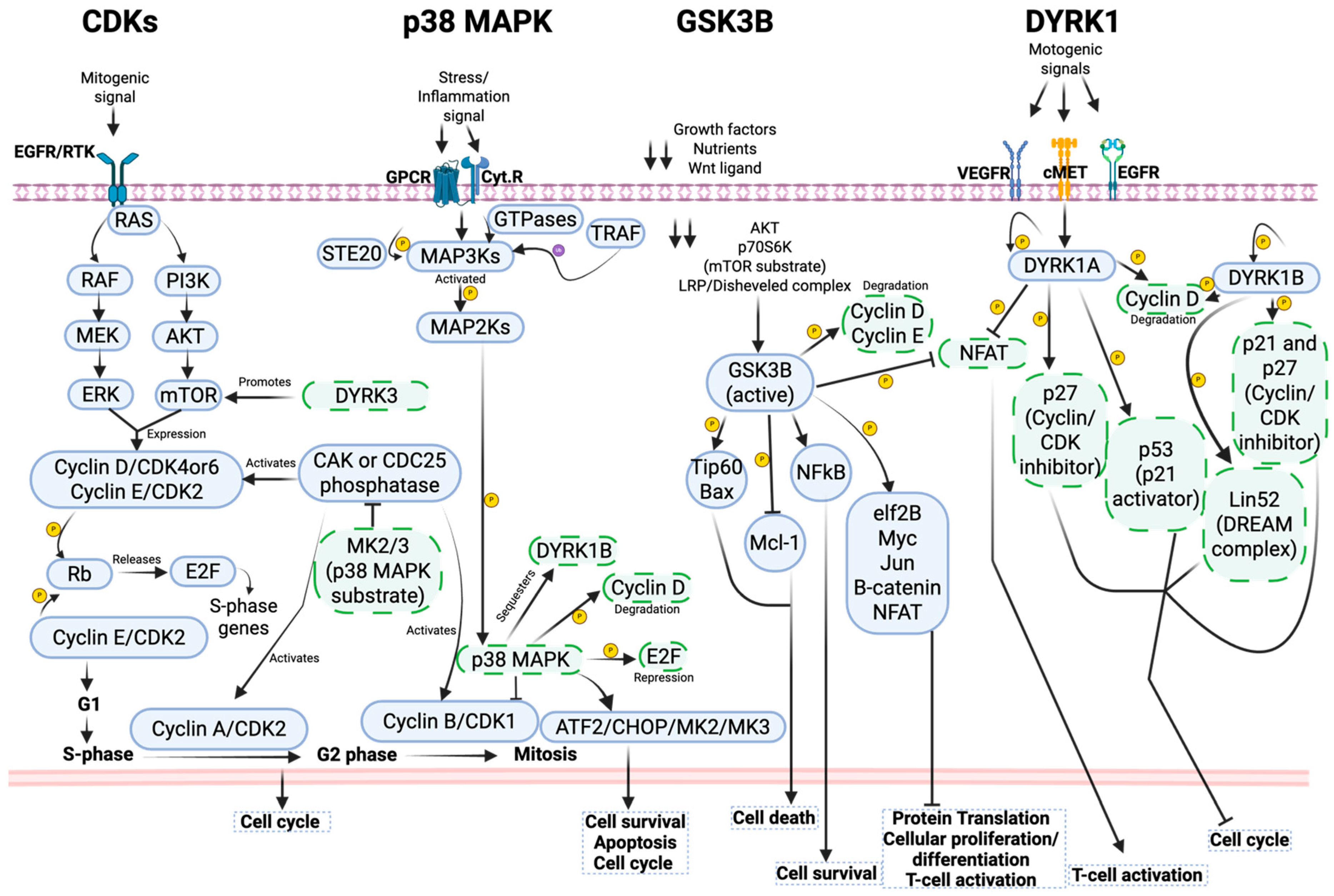 1.6.2. p38 MAPK and DYRKs: Stress, Degeneration, and Metabolism