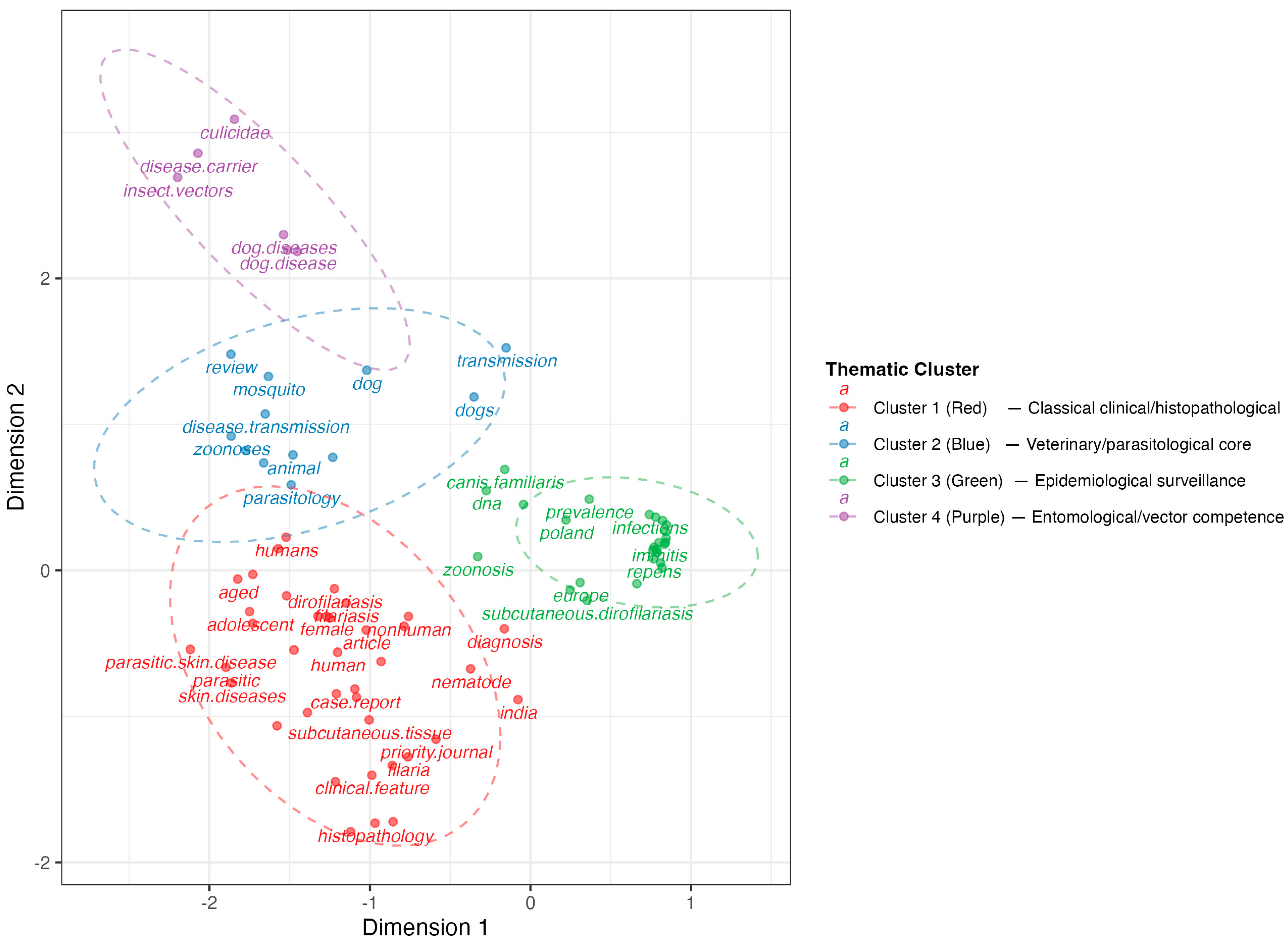 Chicago/Turabian StyleAguilar-Elena, Raúl, Iván Rodríguez-Escolar, Manuel Collado-Cuadrado, Elena Infante González-Mohino, Alfonso Balmori-de la Puente, Alberto Gil-Abad, and Rodrigo Morchón. 2026. "Global Research Trends in Emerging Zoonosis Due to (the Filarial Nematode) Dirofilaria repens (1955–2025): A Bibliometric Analysis of a Climate-Driven Expansion" Pathogens 15, no. 4: 386. https://doi.org/10.3390/pathogens15040386
