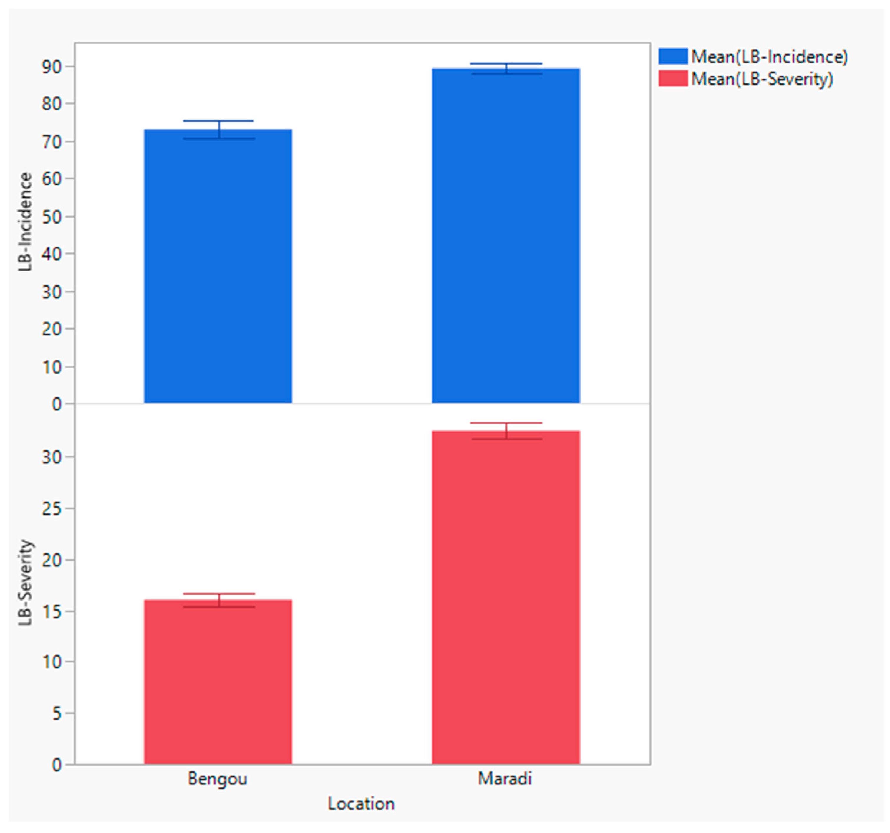 - Prom, L.K.; Adamou, H.; Bibata, A.O.; Issa, K.; Abdoulkadri, A.A.; Oumarou, O.H.; Adamou, B.; Fall, C.; Magill, C. Incidence, severity, and prevalence of sorghum diseases in the major production regions in Niger. J. Plant Stud. 2023, 12, 48–59. [Google Scholar] [CrossRef]