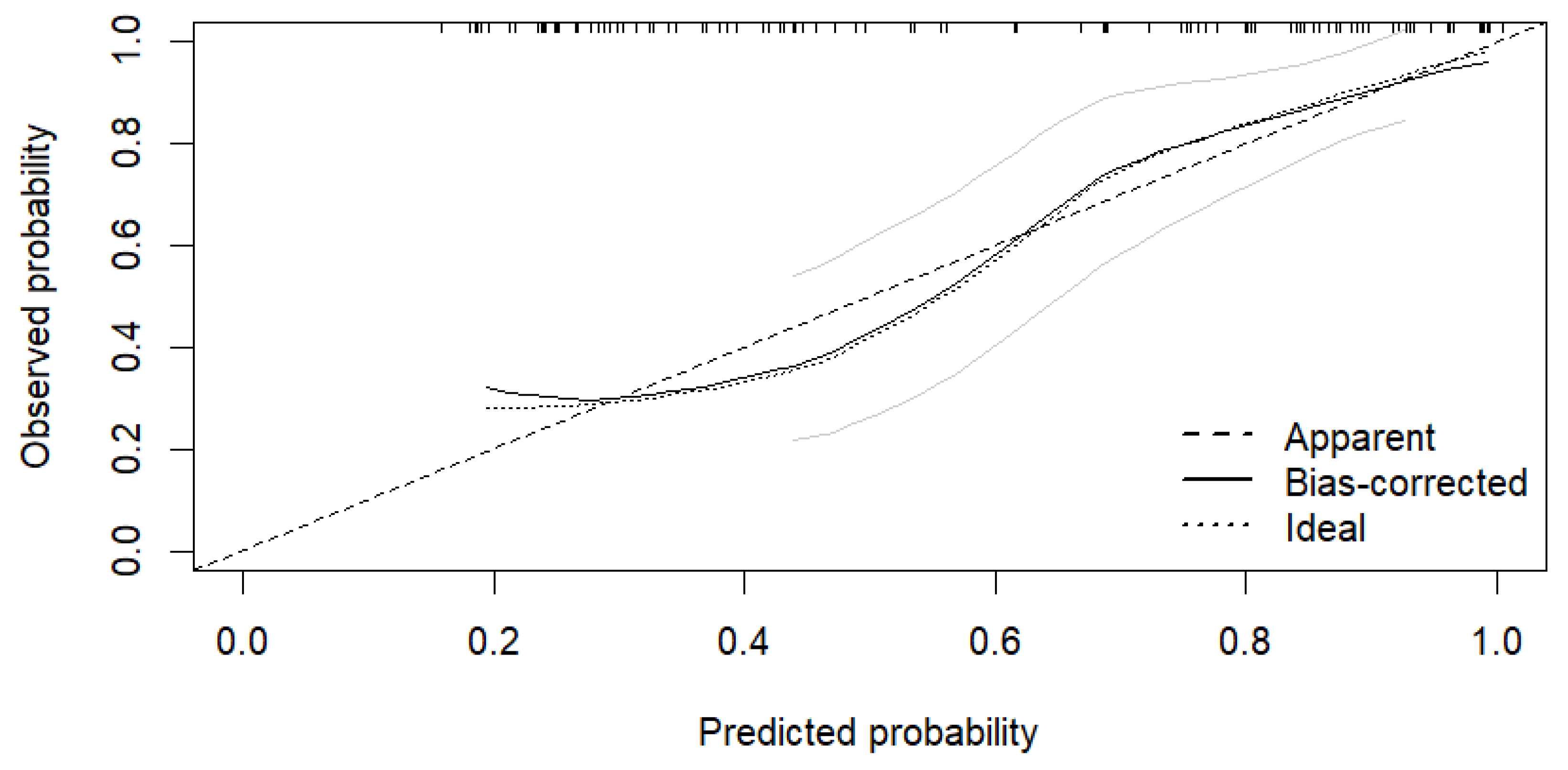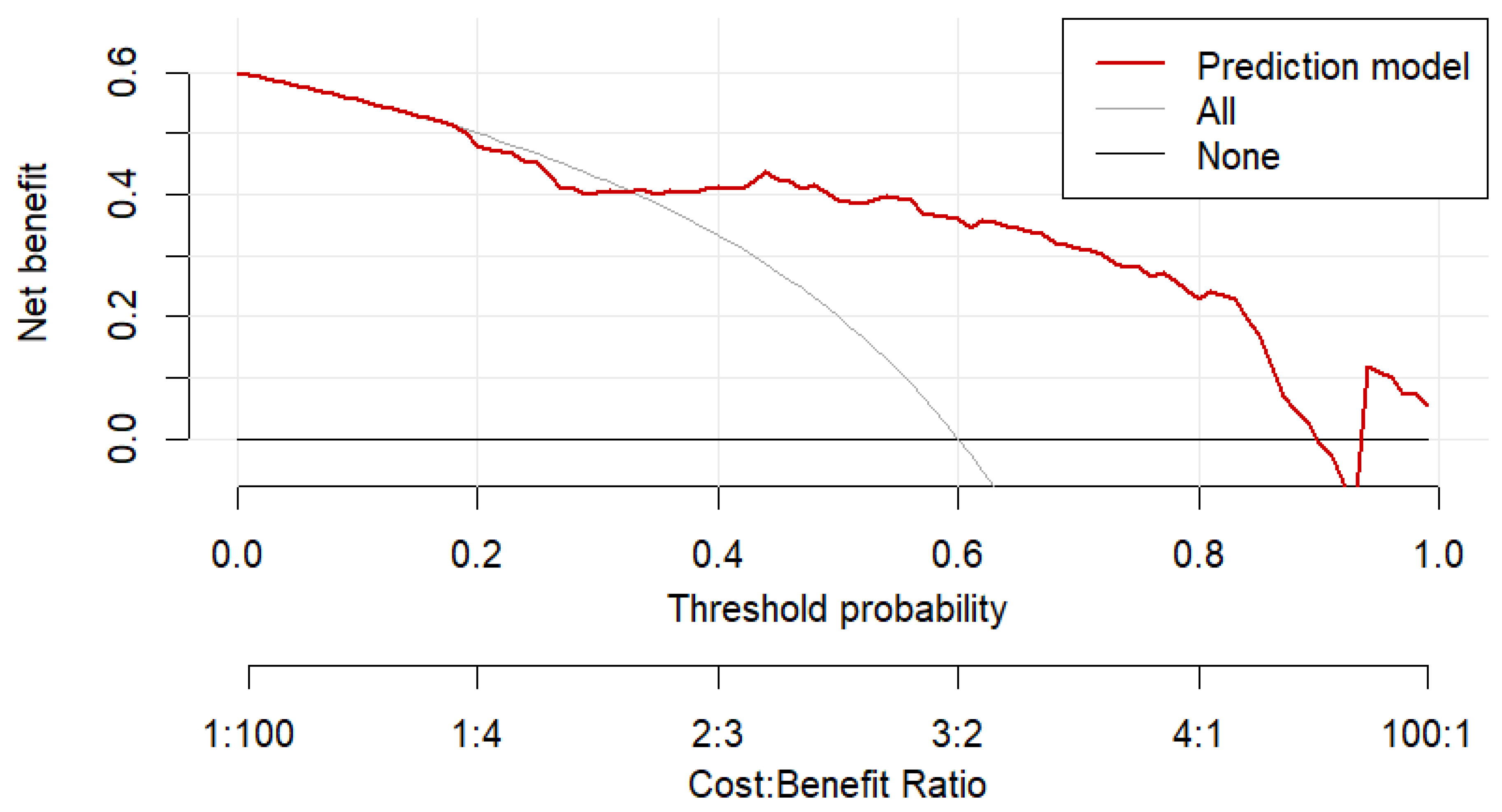 3.2.2. Decision Curve Analysis of Multivariable Logistic Regression Model