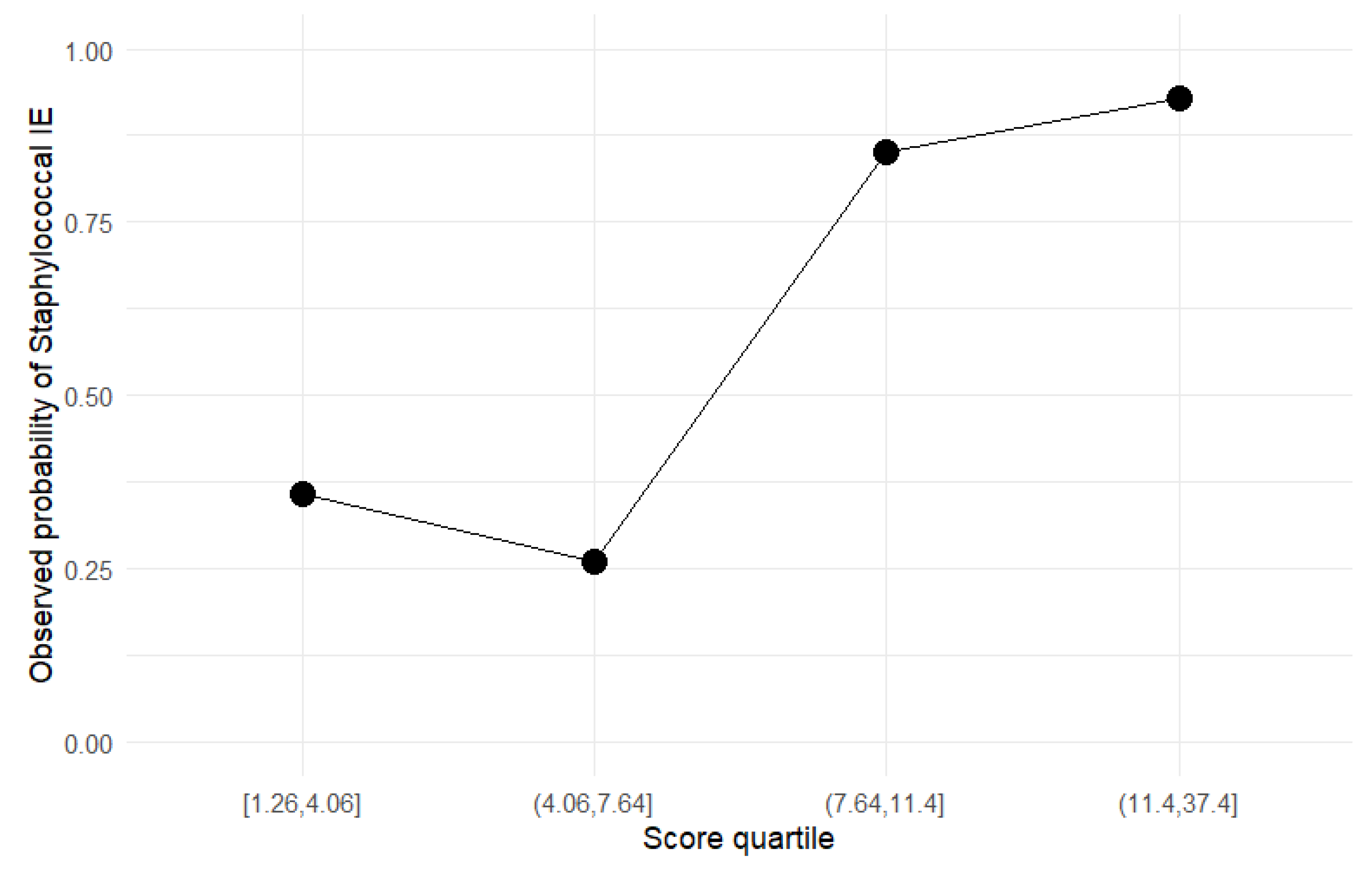 | Score Group | Score Range | Non-Staphylococcal IE | Staphylococcal IE | Observed Risk | Clinical Interpretation |