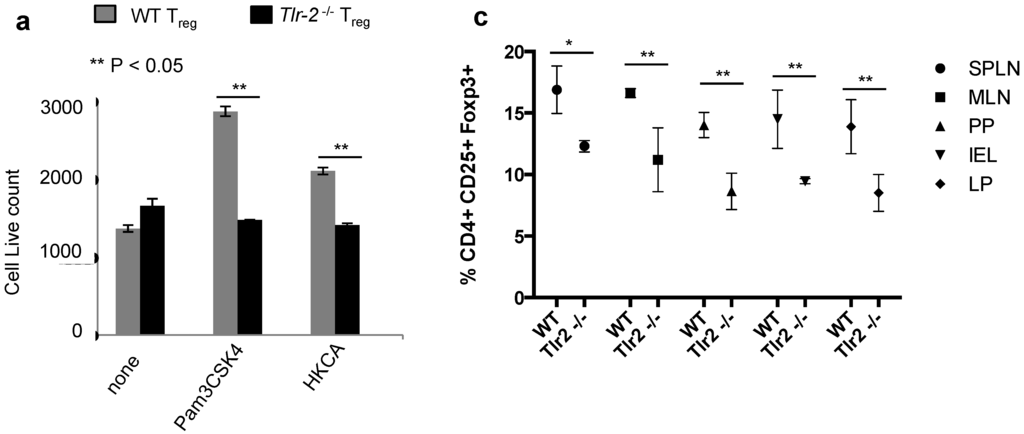 2.6. Direct TLR-2 Signaling in Tregs is Required for Maximal Induction of Foxp3+ IL-17A+ Cells during OPC in Vivo