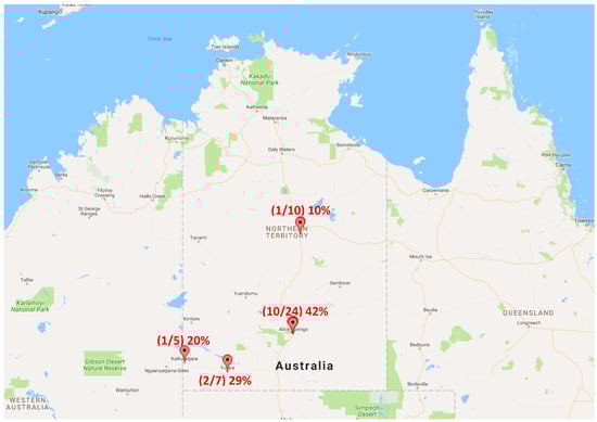 - Google Maps 2016, Northern Territory. Available online: http://www.google.com.au/maps/place/northern+territory/@-18.4000078,129.0076453,6z/data=!3m1!4b1!4m5!3m4!1s0x2b5172c2e6f3190f:0x2775!8m2!3d-19.4914108!4d132.5509603 (accessed on 5 June 2016).
